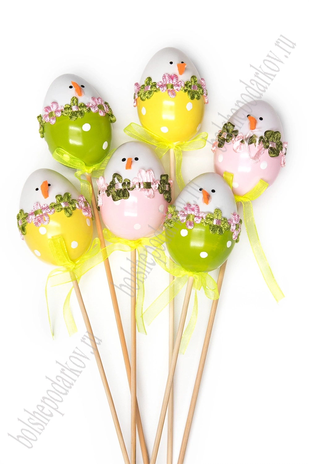 Пасхальный декор 6*4 см "Яйцо на палочке" (6 шт) SF-7202, ассорти №4