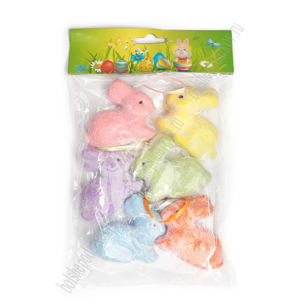 Пасхальный декор 6*6 см "Зайчики" (6 шт) SF-7195, №1