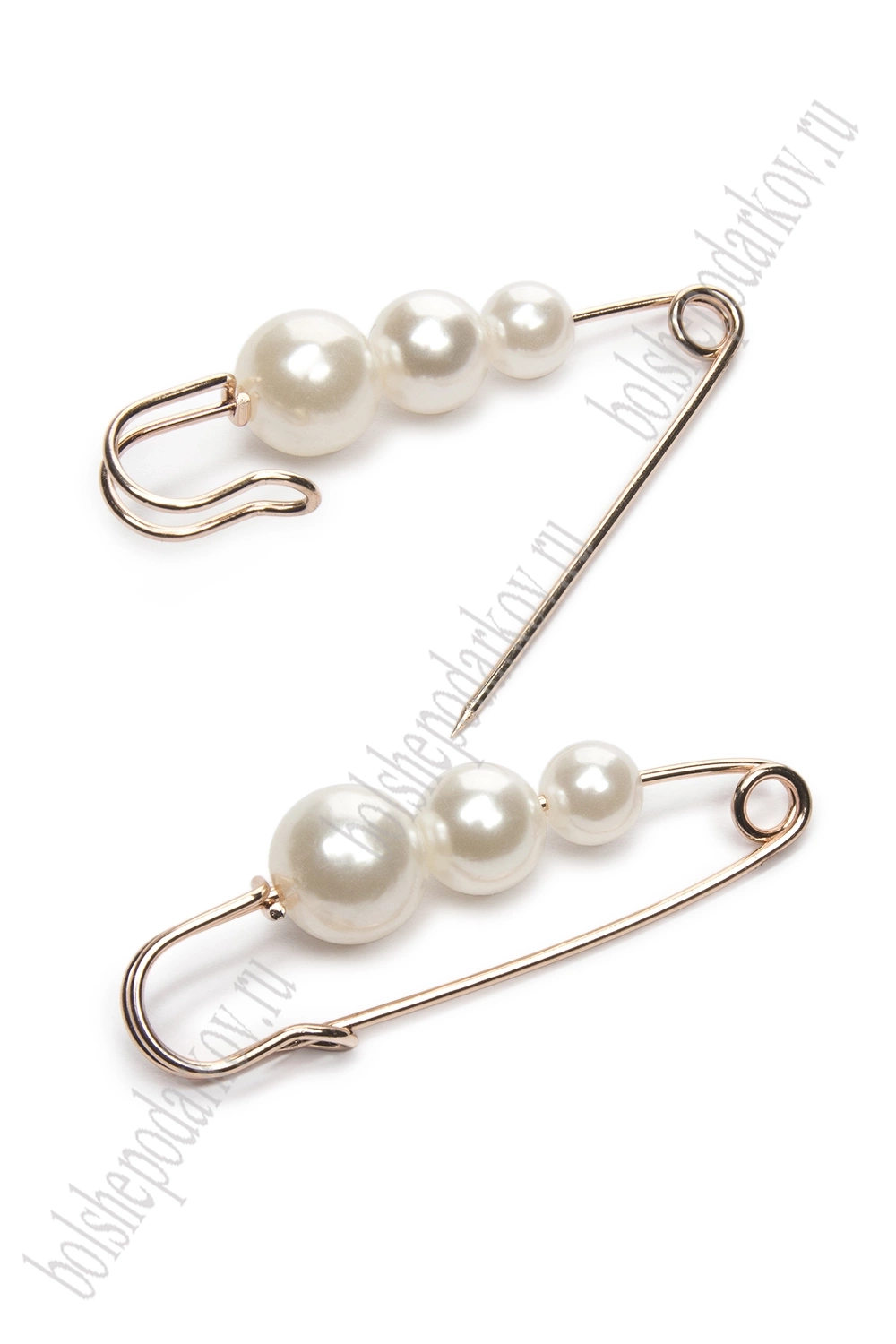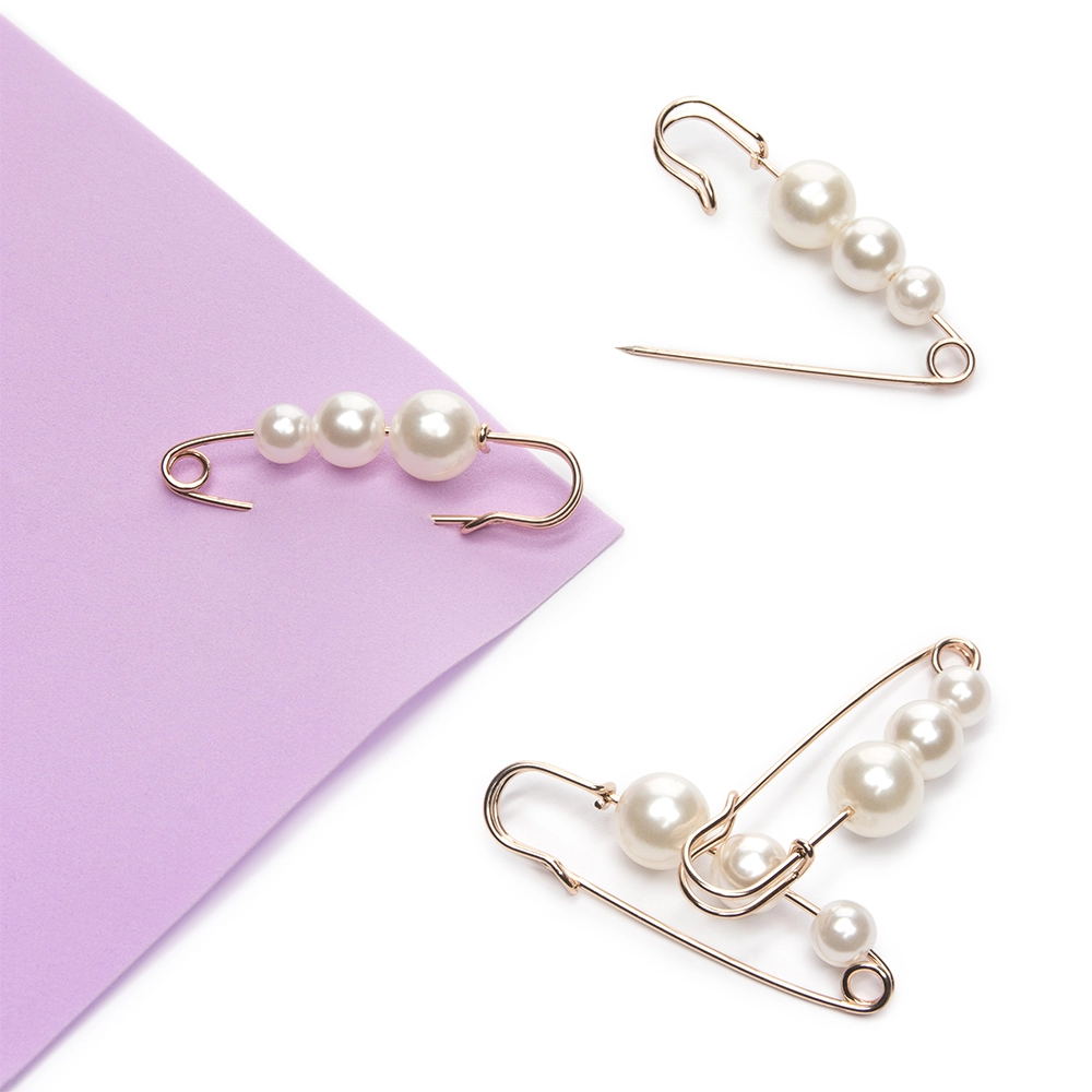 Булавка с 3 бусинами (5 шт) SF-1251, белый/золото