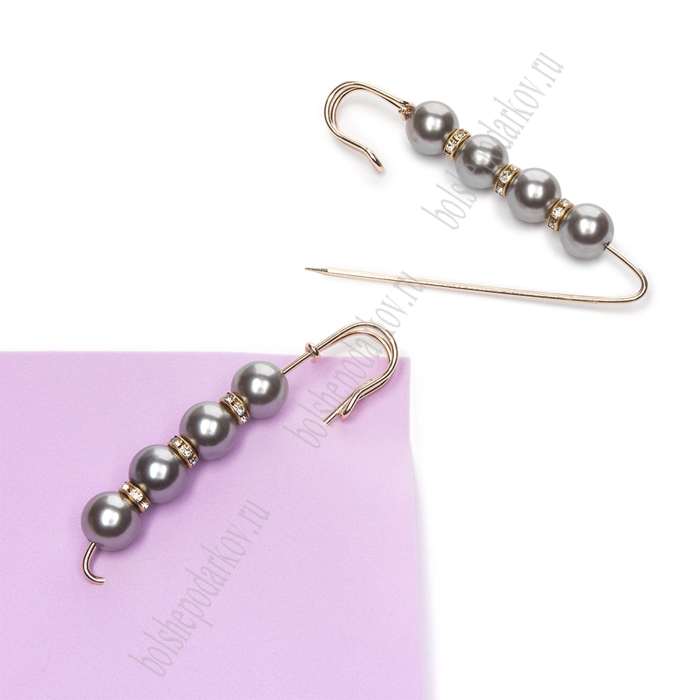 Булавка с 4 бусинами и стразами 8 см (2 шт) SF-1252, серый/золото