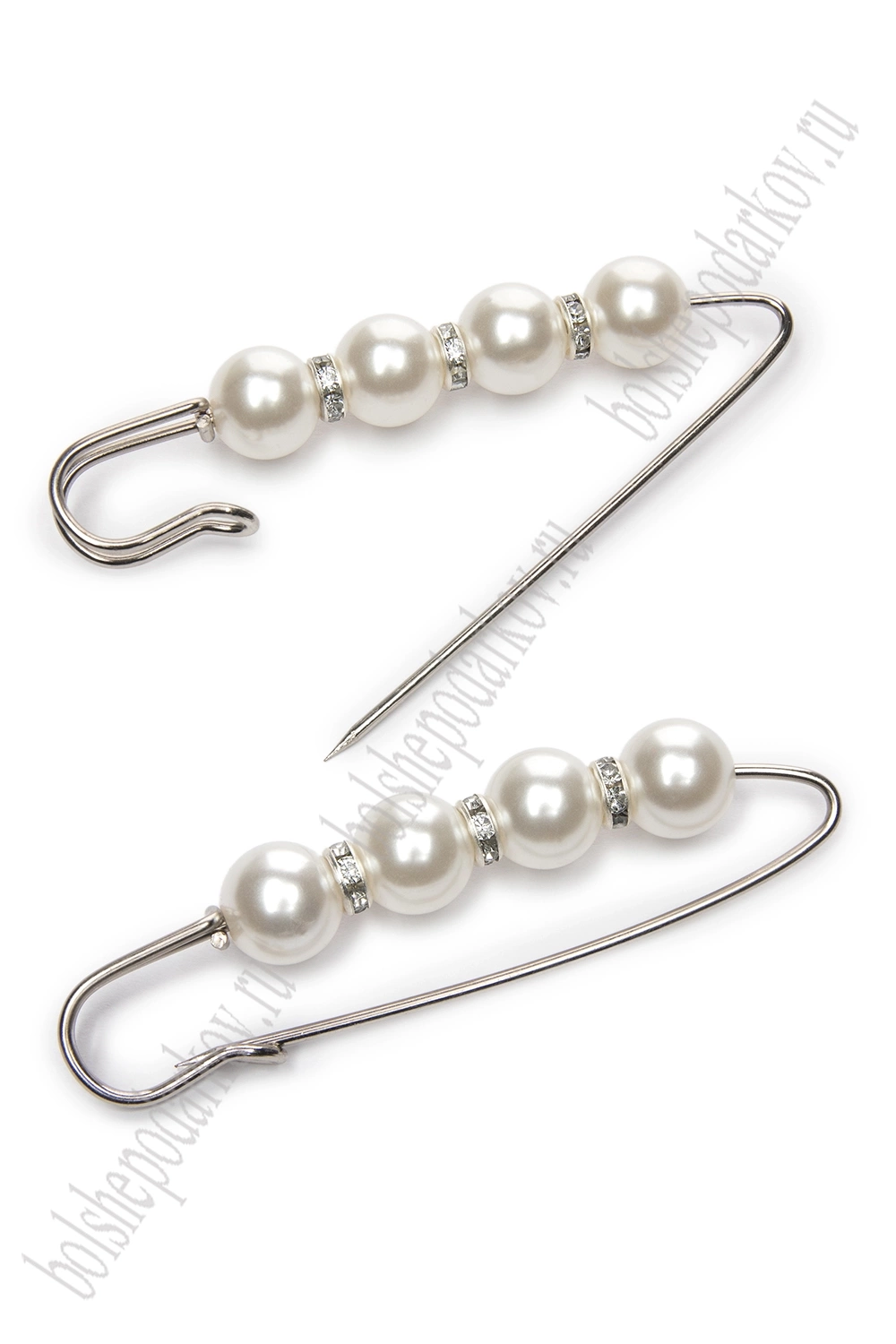 Булавка с 4 бусинами и стразами (2 шт) SF-1252, белый/серебро