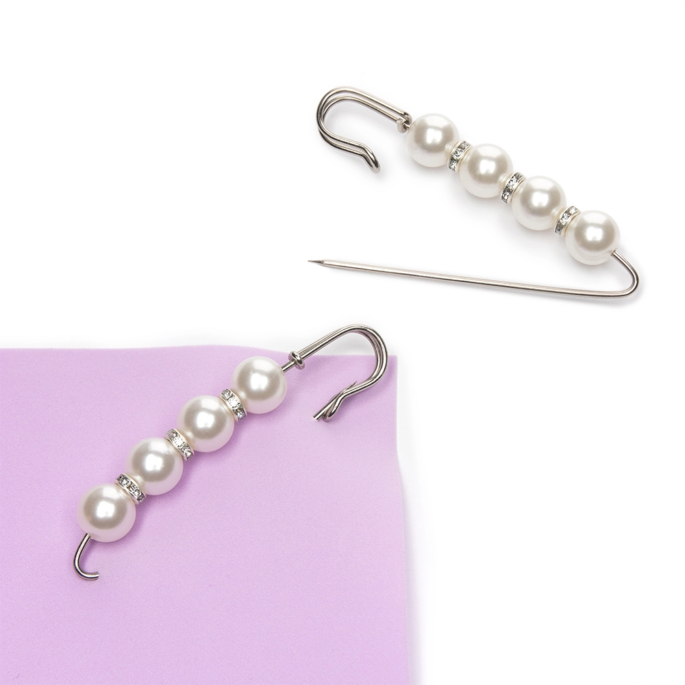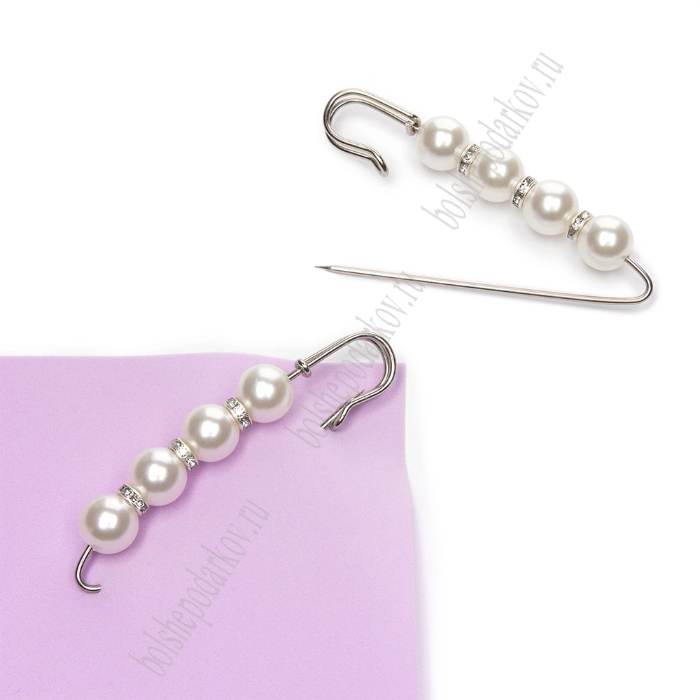 Булавка с 4 бусинами и стразами 8 см (2 шт) SF-1252, белый/серебро
