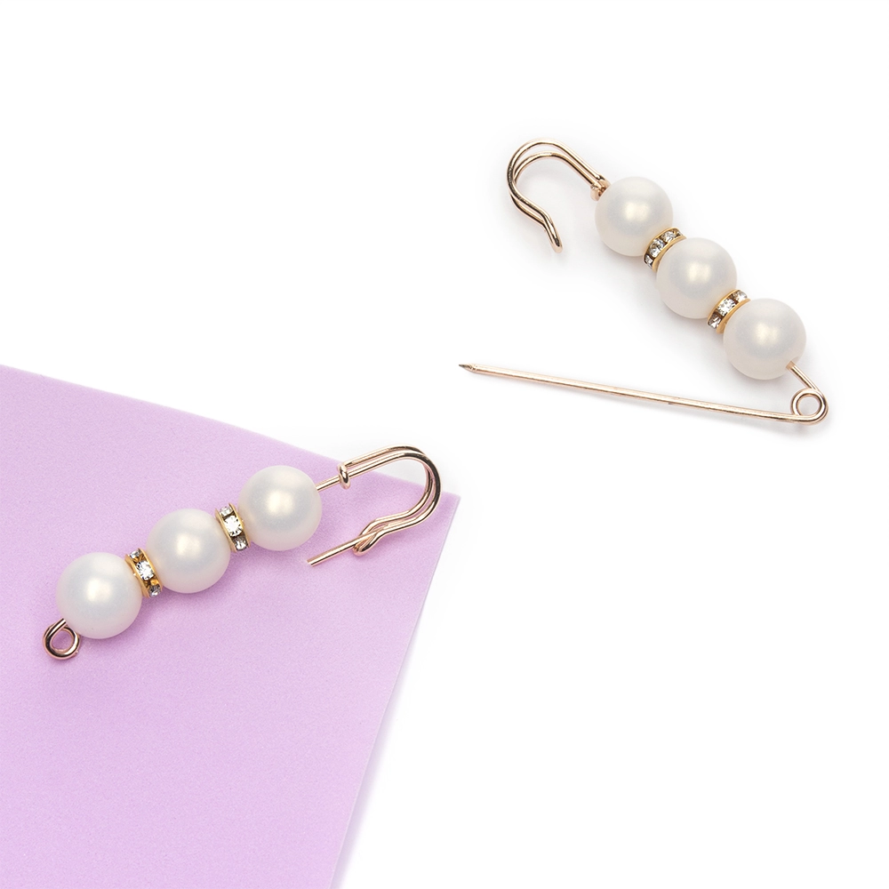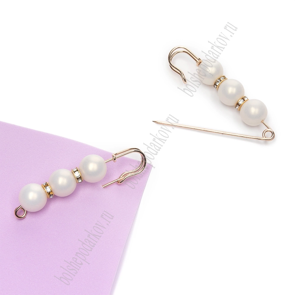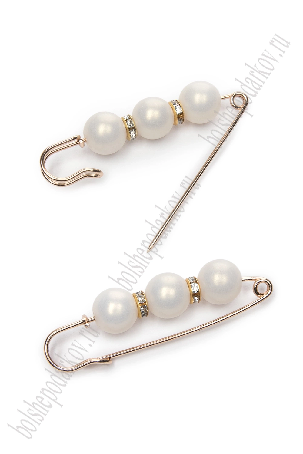 Булавка с 3 бусинами и стразами 5,8 см (2 шт) SF-8108, белый/золото
