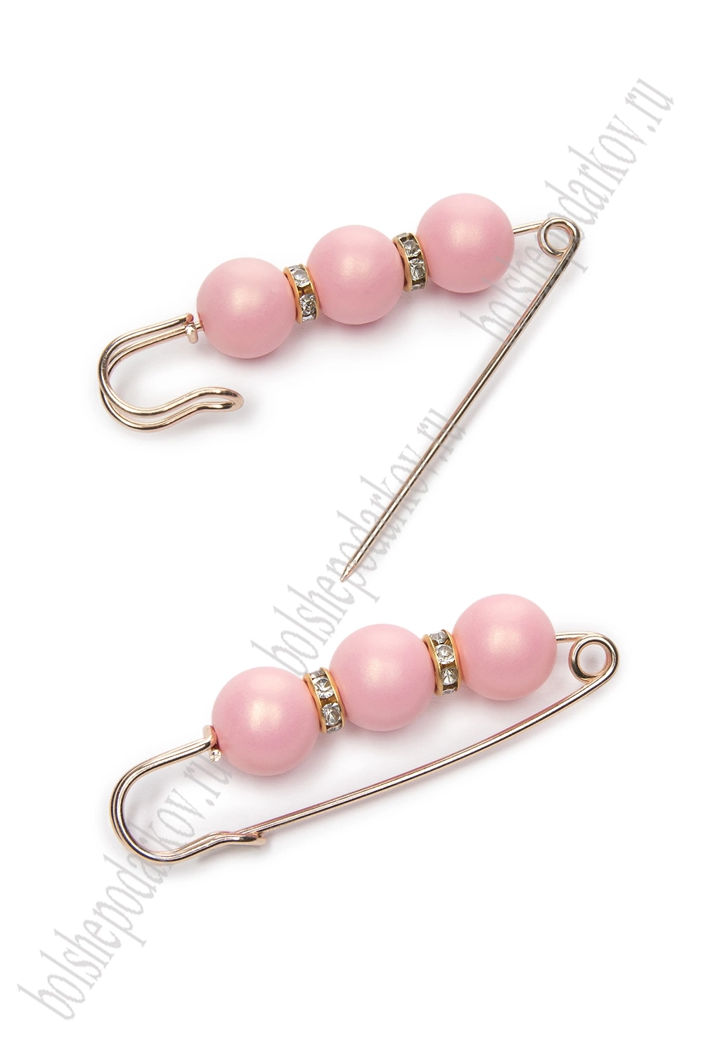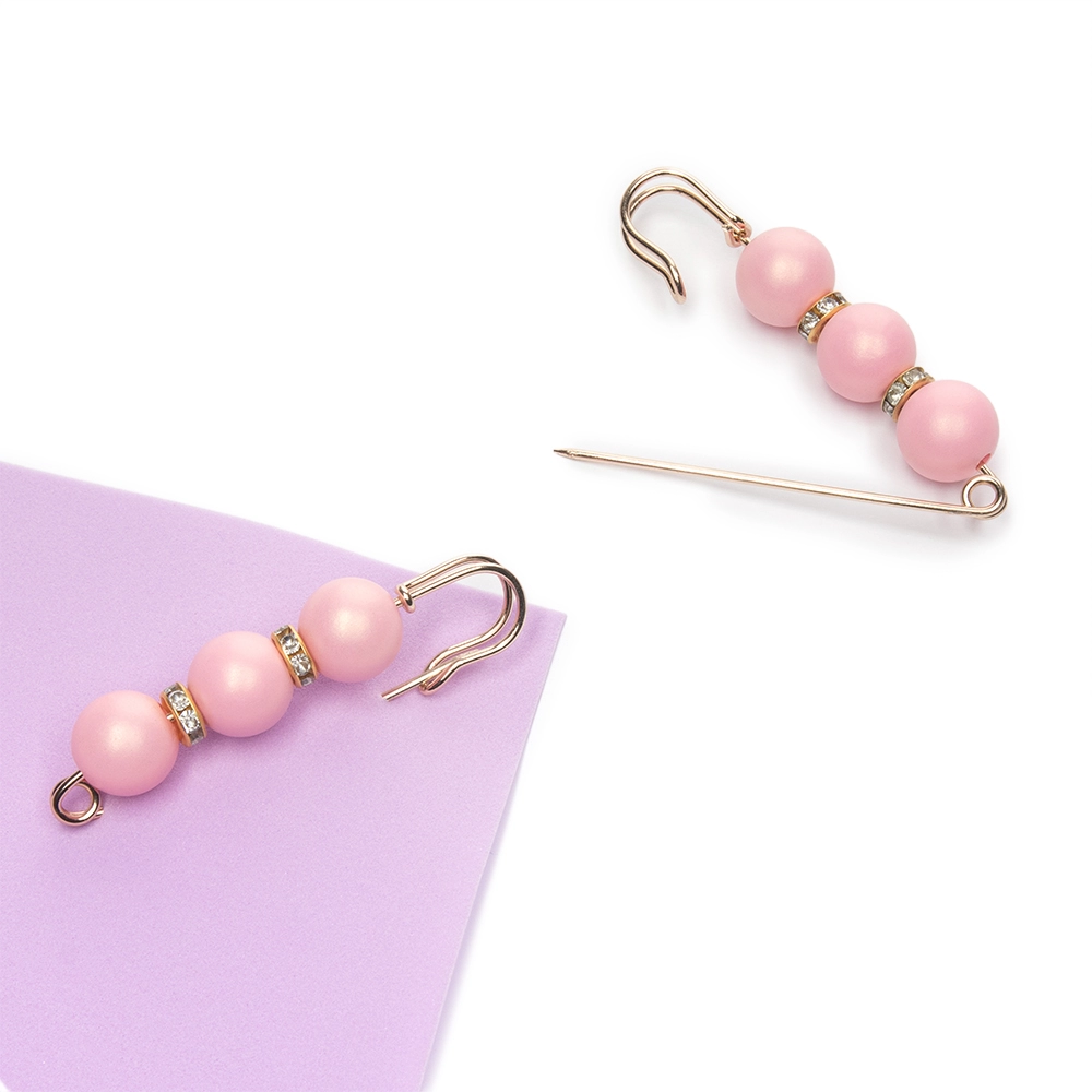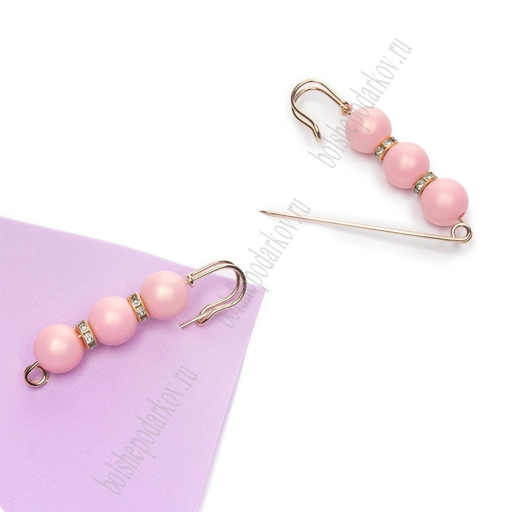 Булавка с 3 бусинами и стразами 5,8 см (2 шт) SF-8108, розовый/золото