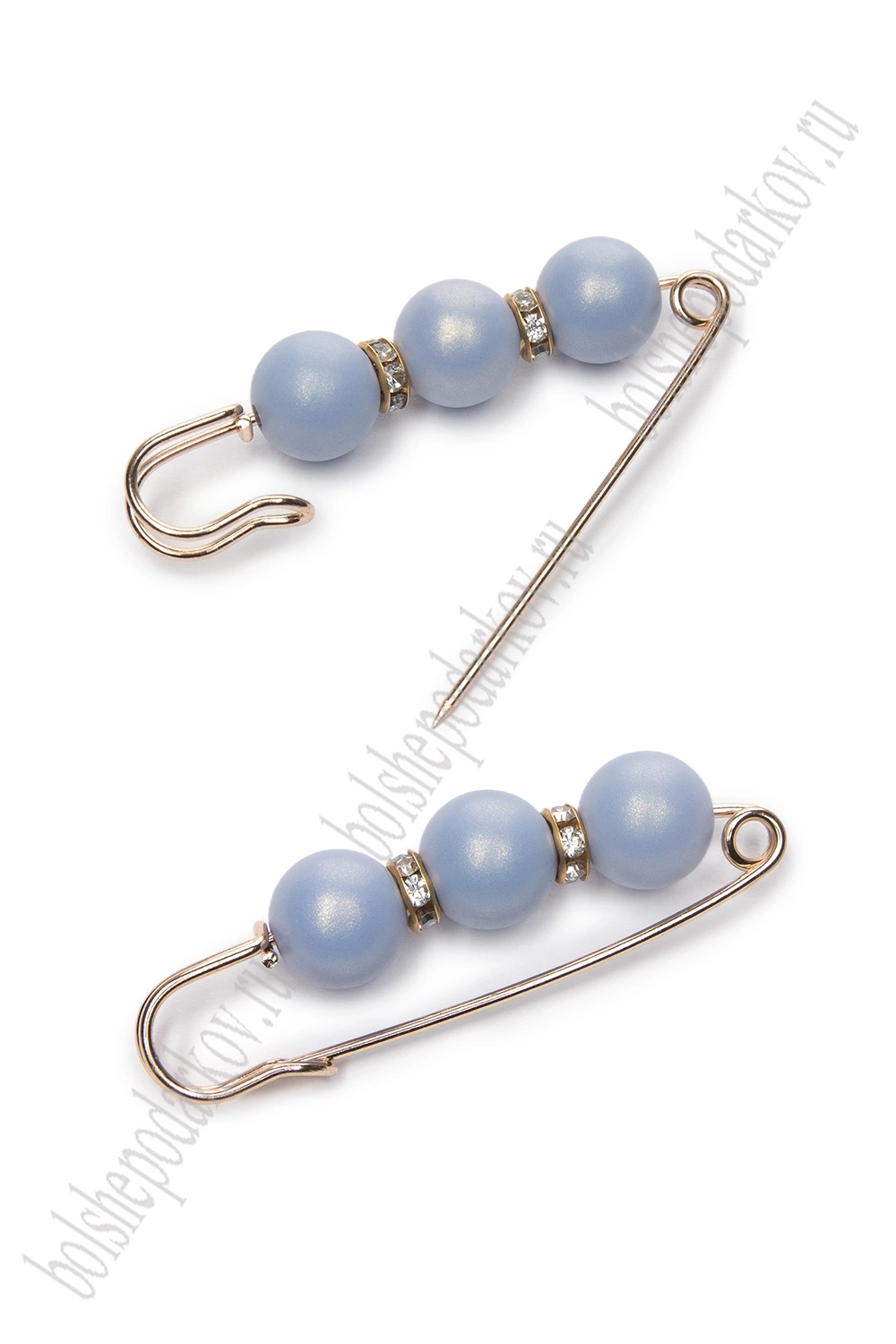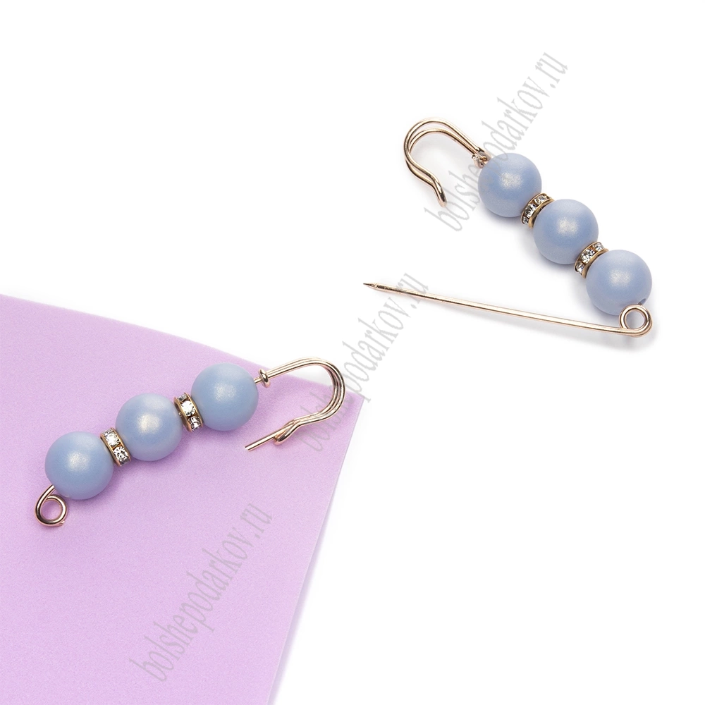 Булавка с 3 бусинами и стразами 5,8 см (2 шт) SF-8108, голубой/золото