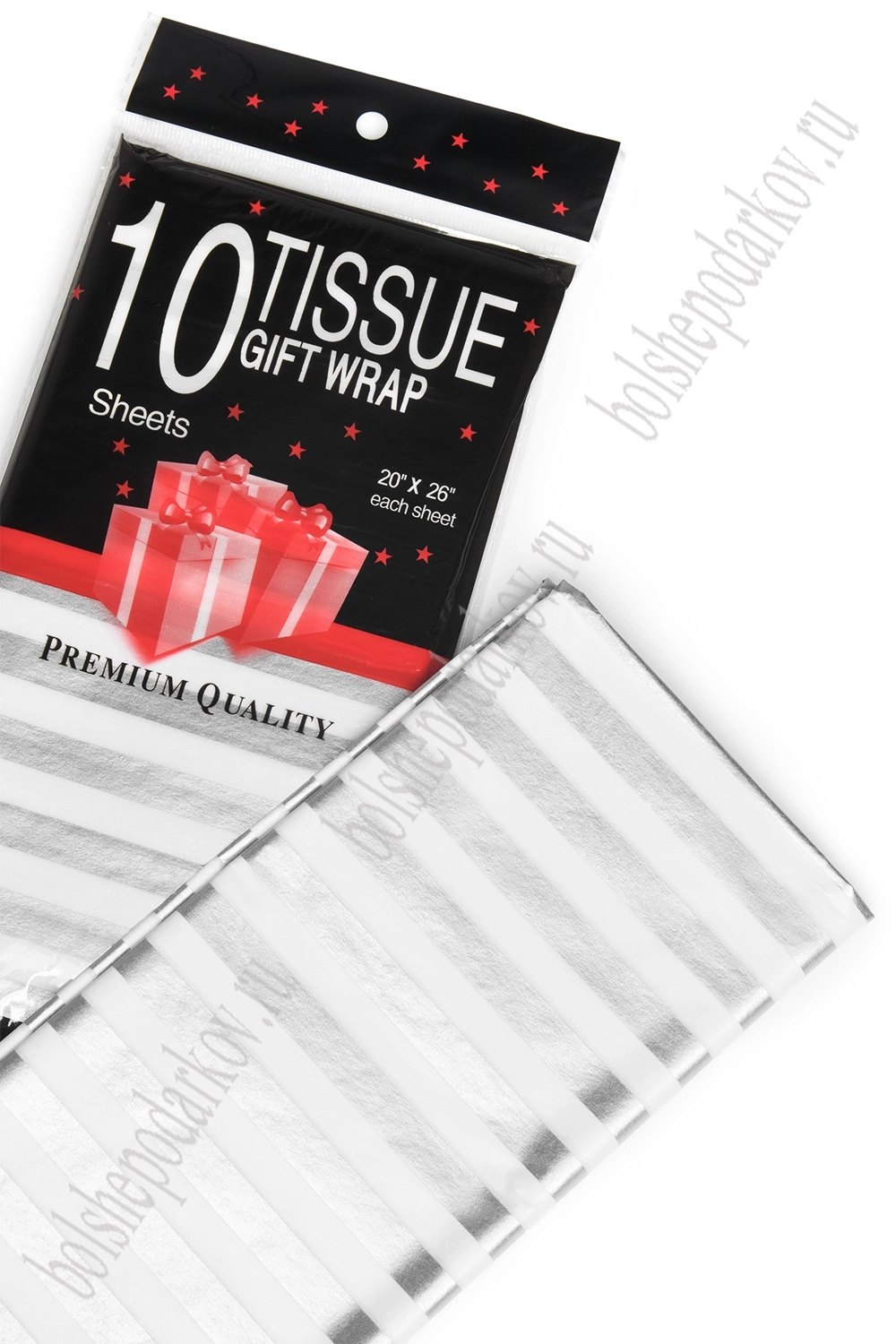 Бумага тишью в полоску 50*66 см (10 листов) SF-2861, белый/серебряный