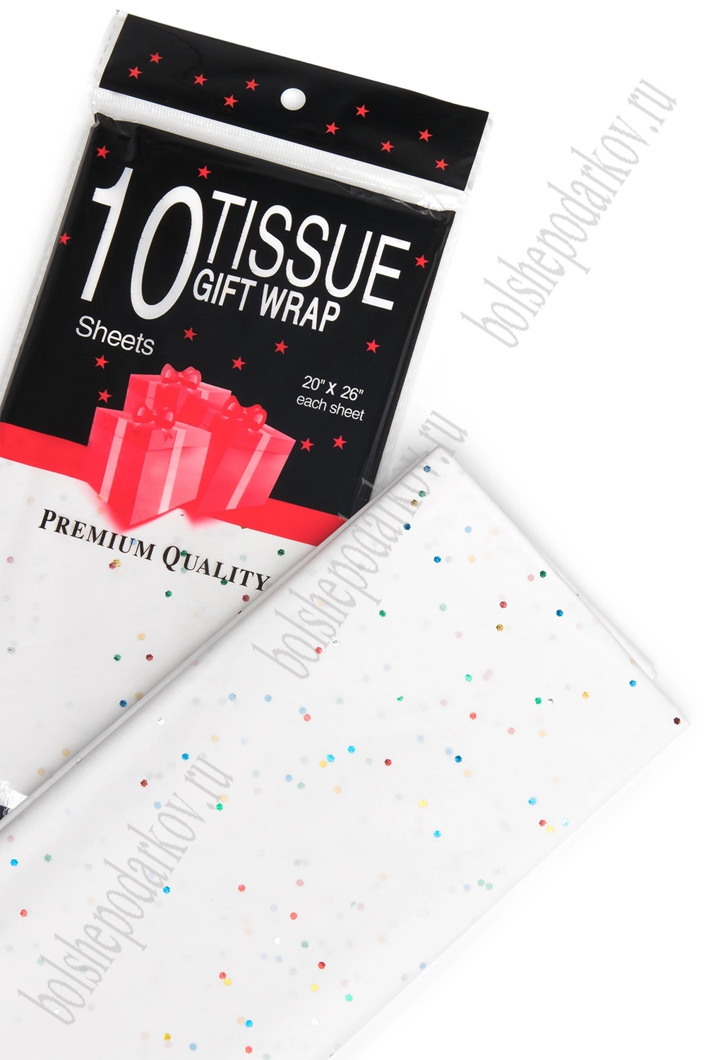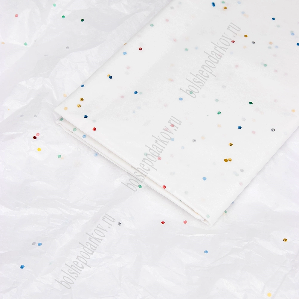 Бумага тишью с блестками 50*66 см (10 листов) SF-2860, белый/мультиколор №045