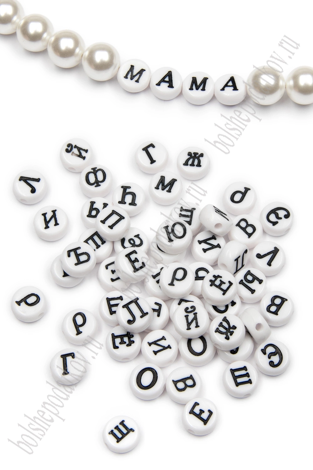 Бусины круглые "Буквы русские" 7 мм (50 гр) SF-7263, белый/черный