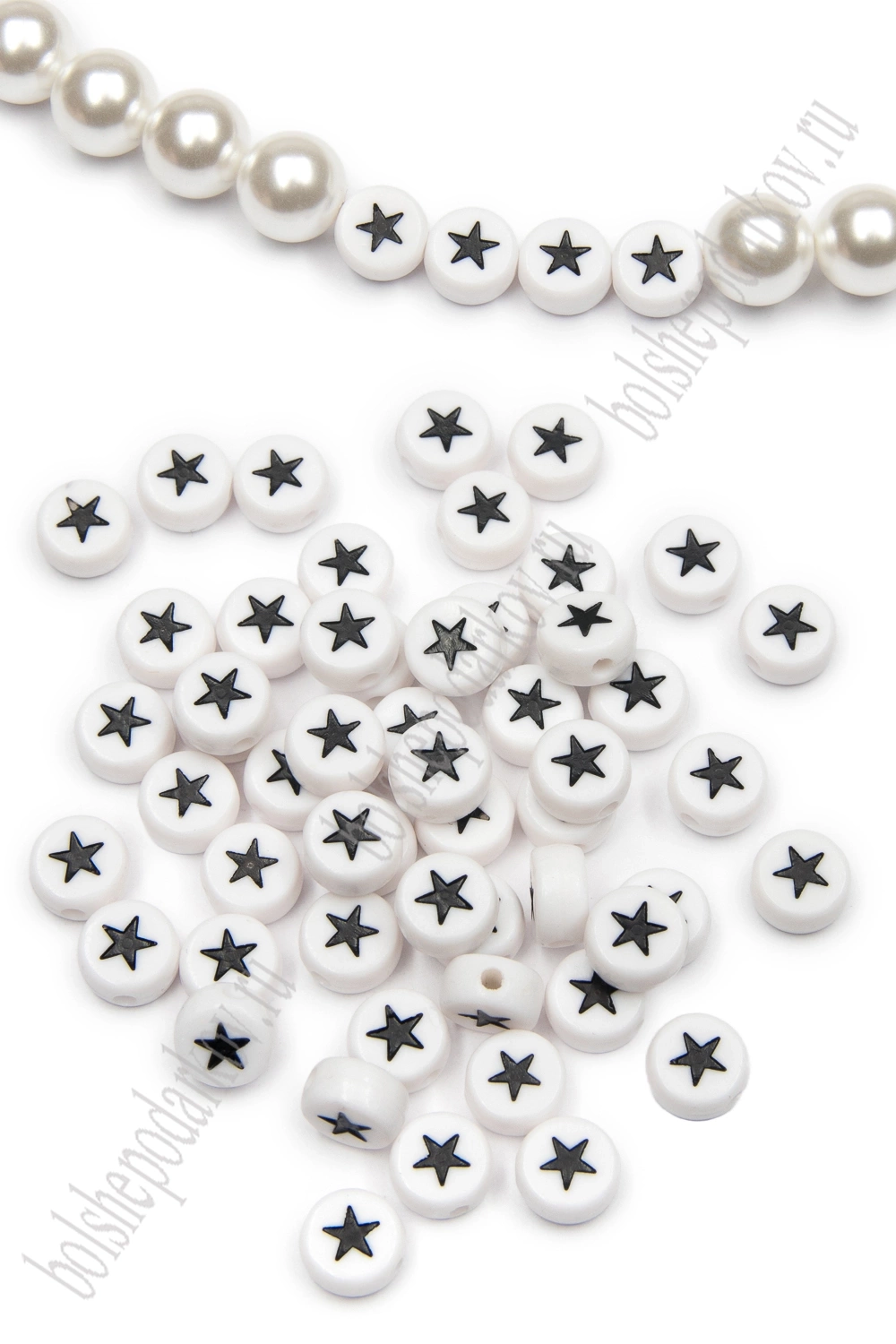 Бусины круглые "Звёздочки" 7 мм (50 гр) SF-7263, белый/черный