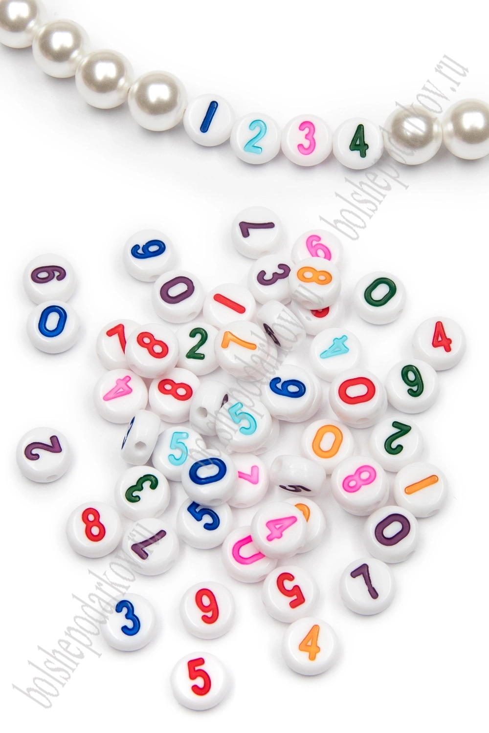 Бусины круглые "Цифры" 7 мм (50 гр) SF-7263, белый/микс