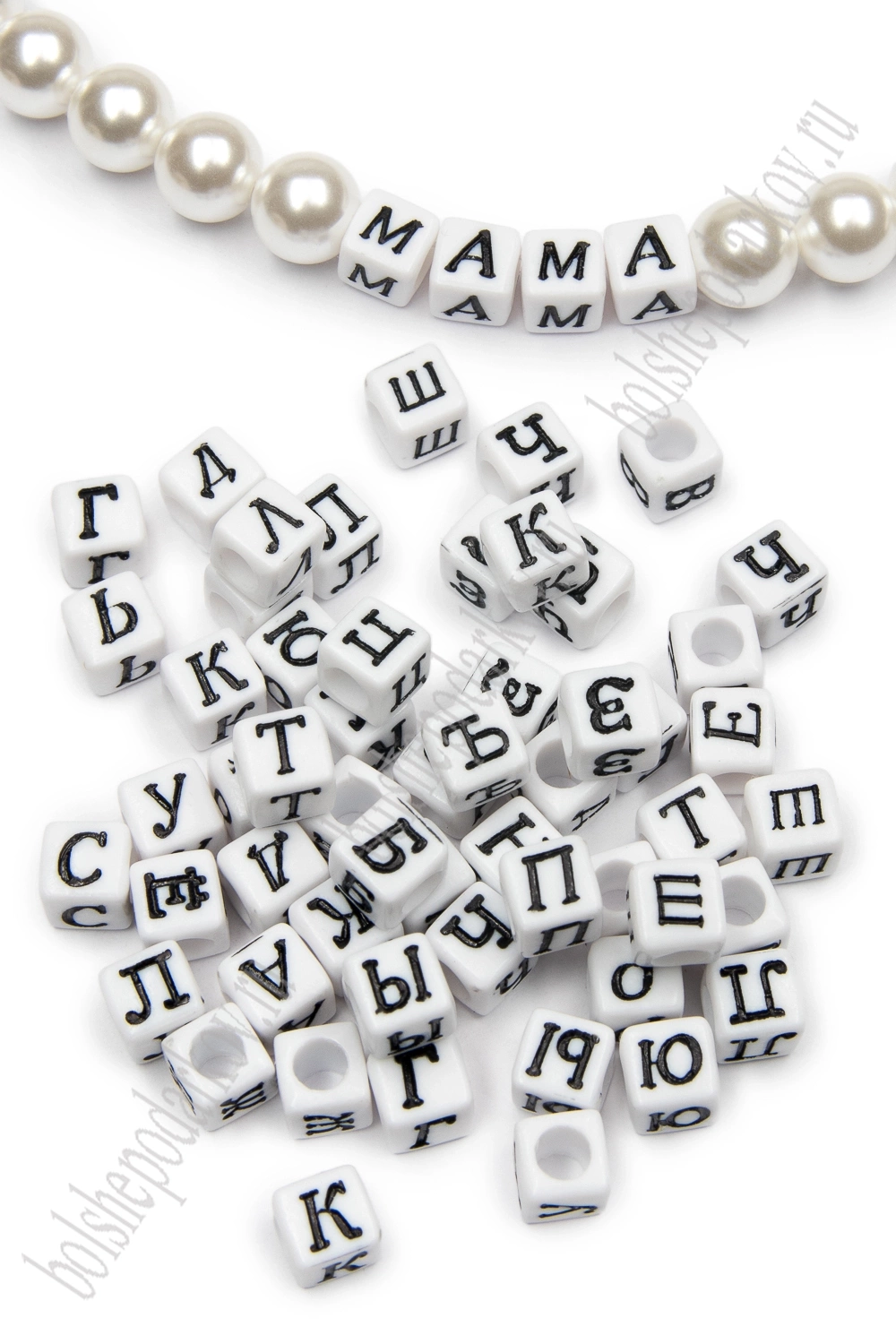 Бусины квадратные "Буквы русские" 6 мм (500 гр) SF-7265, белый/черный