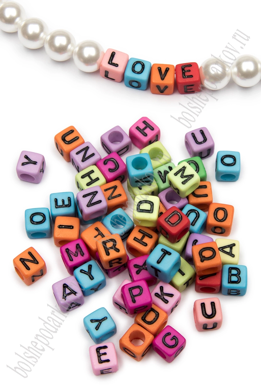 Бусины квадратные "Буквы английские" 6 мм (500 гр) SF-7268, микс