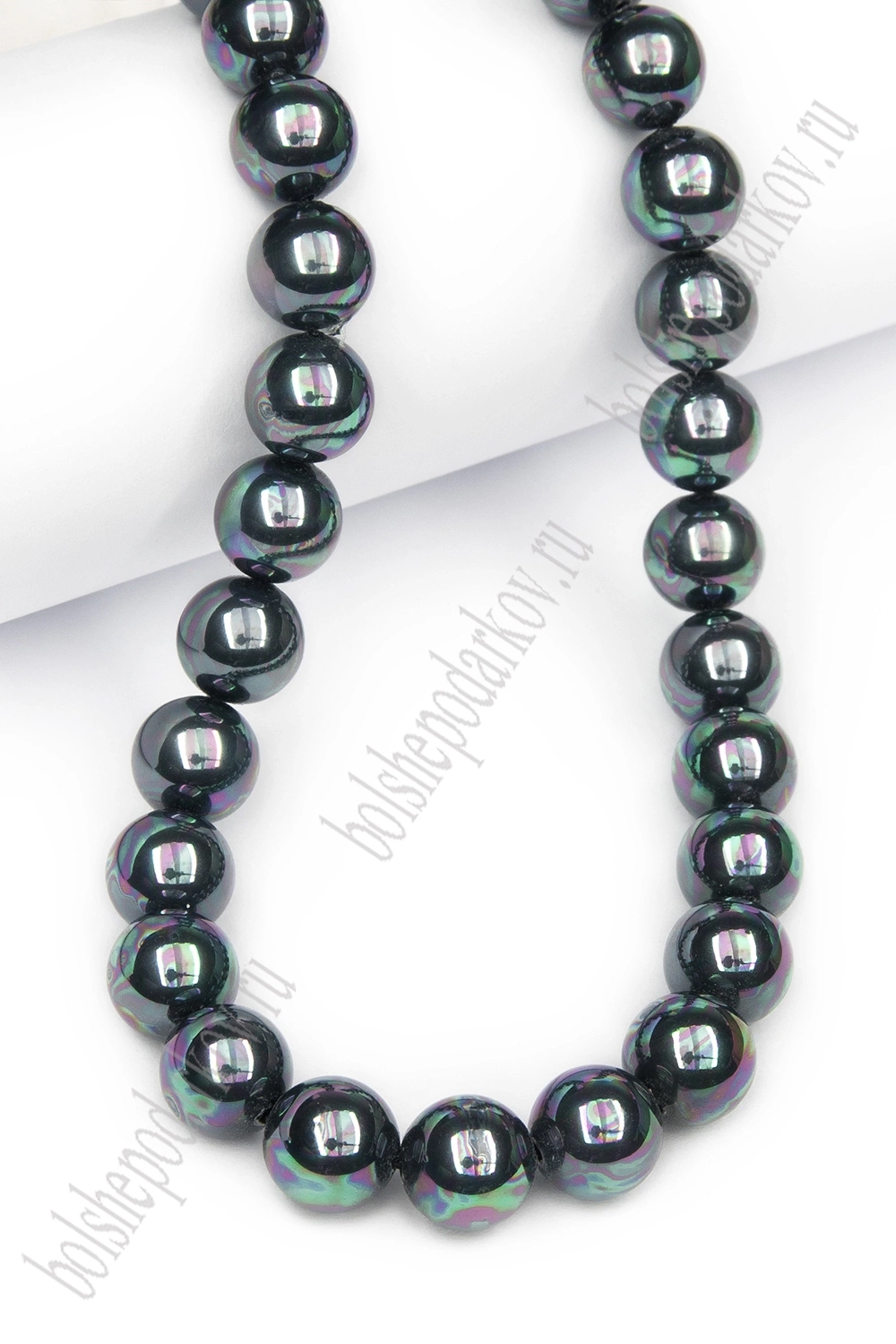 Бусины круглые на нитке 10 мм (SF-8070) жемчуг черный радужный