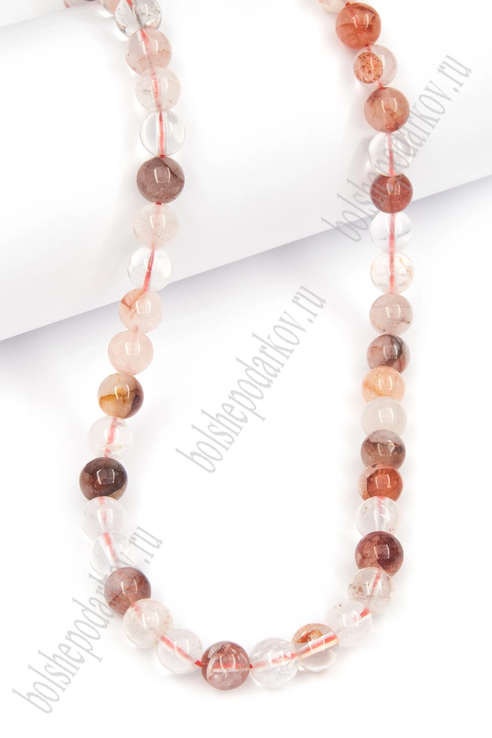 Бусины круглые на нитке 6 мм (SF-7590) кварц коричневый