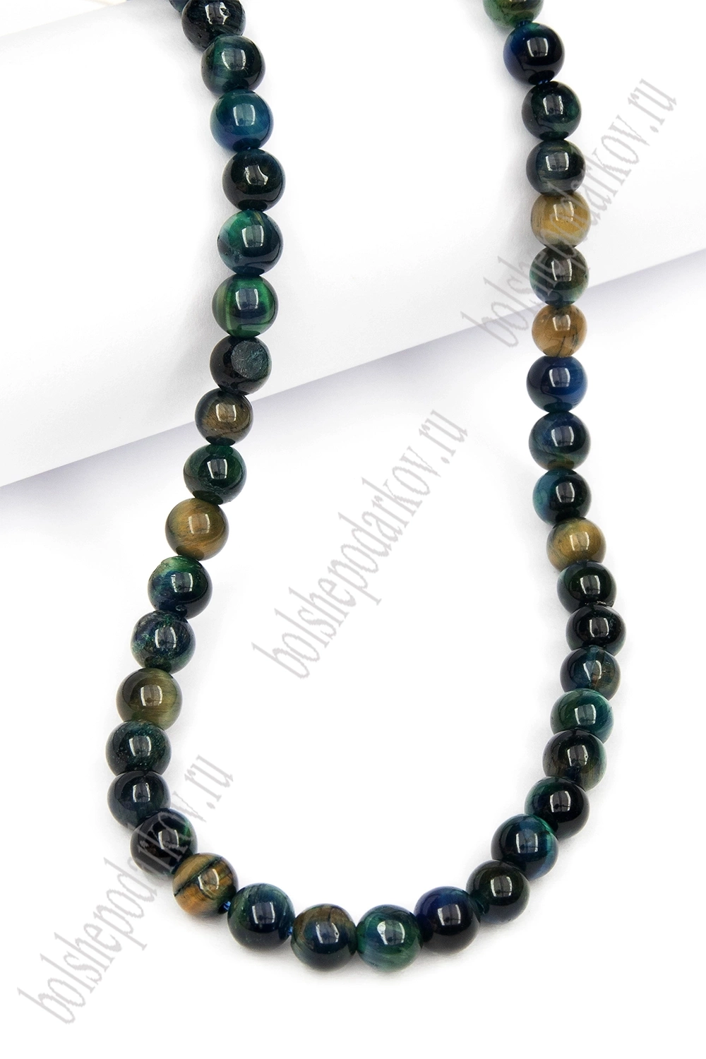 Бусины круглые на нитке 6 мм (SF-7590) соколиный глаз микс