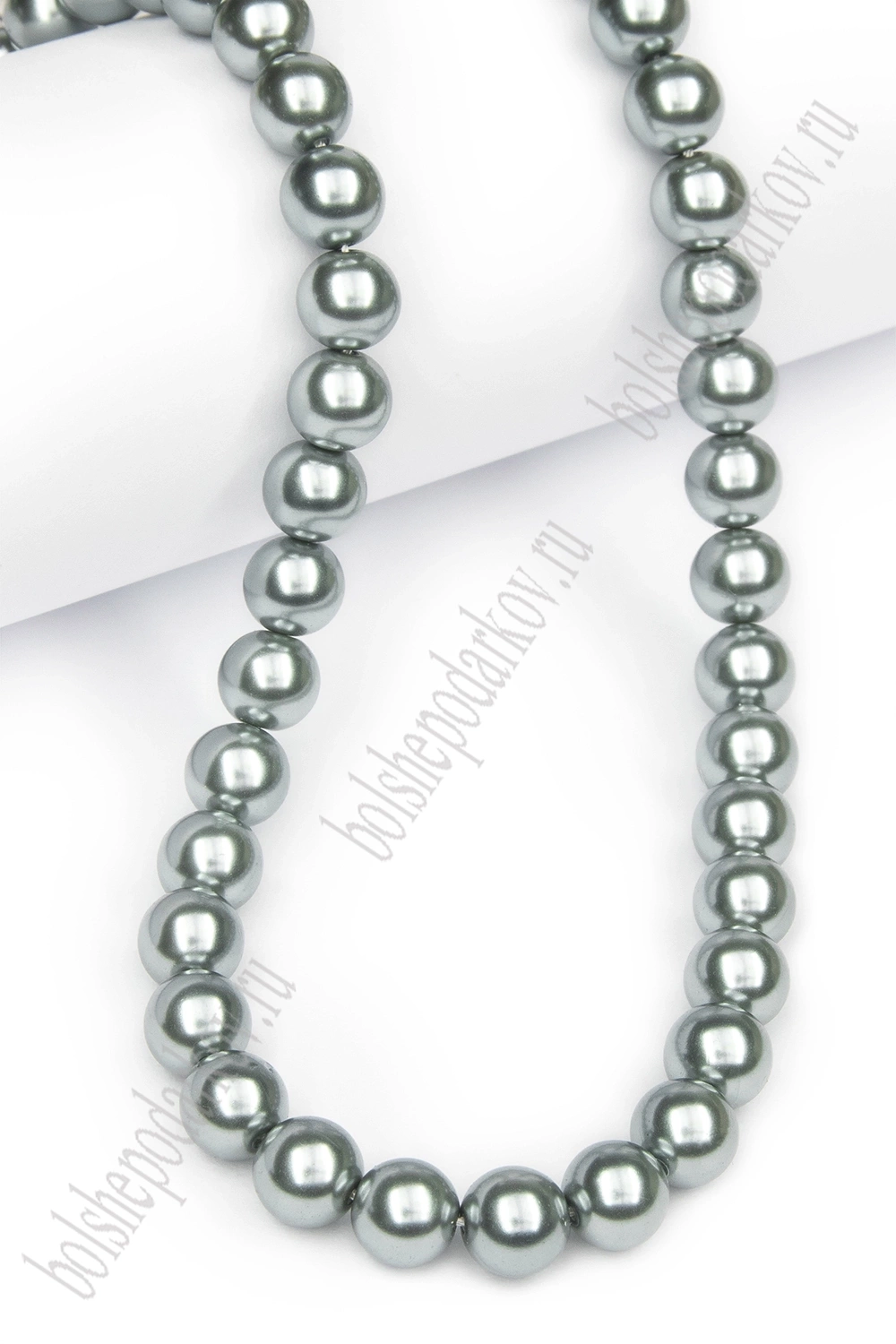 Бусины круглые на нитке 8 мм (SF-8069) жемчуг серый