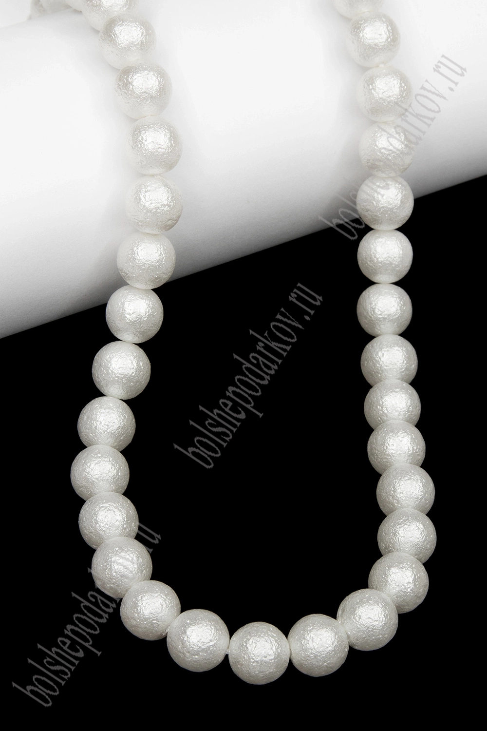Бусины круглые на леске 8 мм (SF-8072) хлопковый жемчуг белый