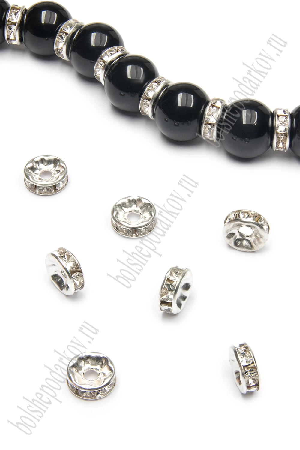 Бусина разделитель с кристаллами 8 мм (100 шт) SF-8139, серебро