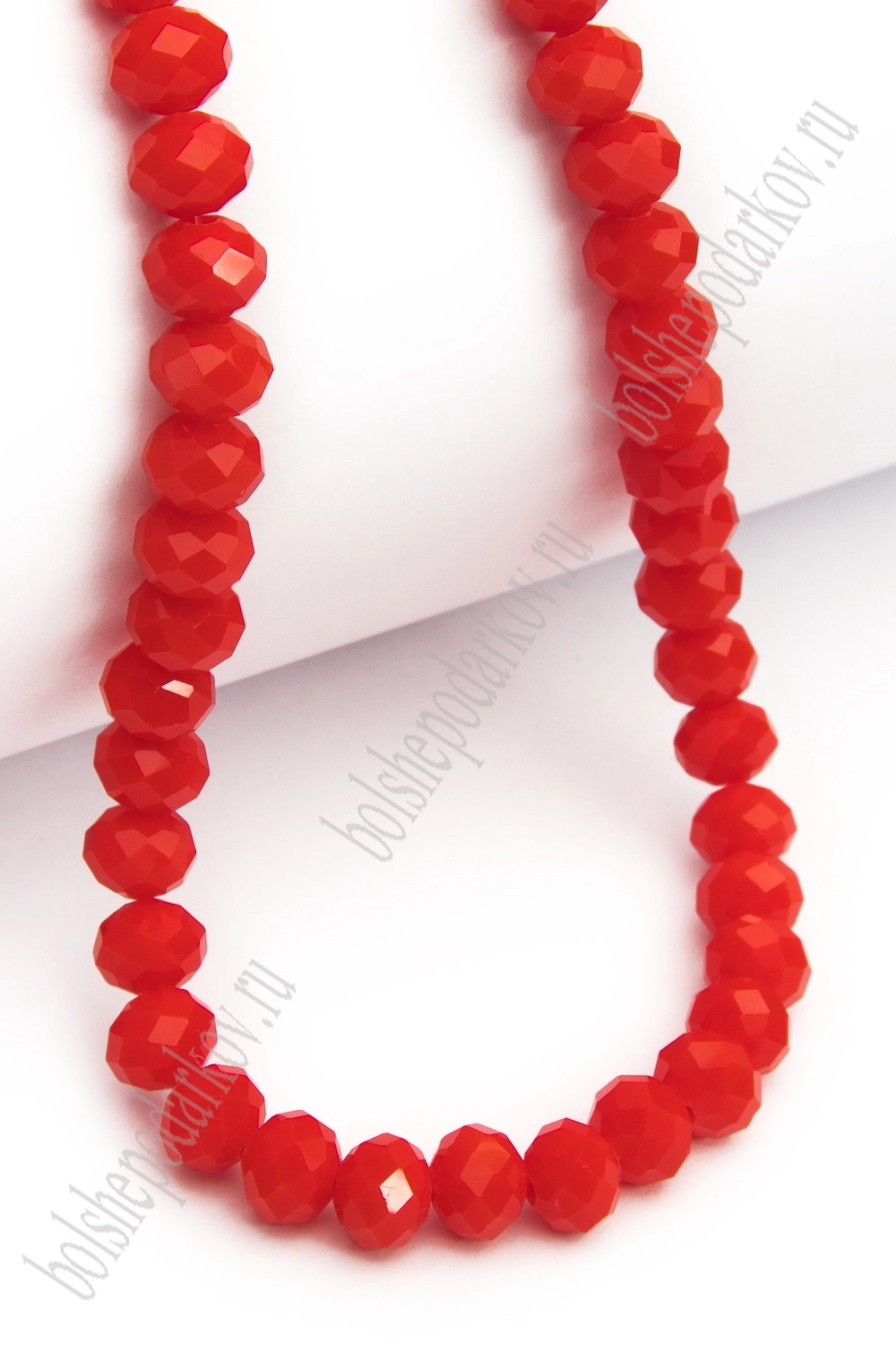 Бусины стеклянные, матовые, на леске "Rondelle" 8 мм (SF-657) красный №506