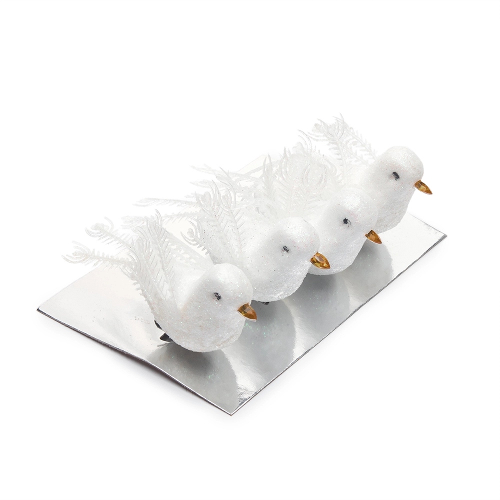 Птички декоративные с зажимом 8,5 см (4 шт) SF-5036, белый №1