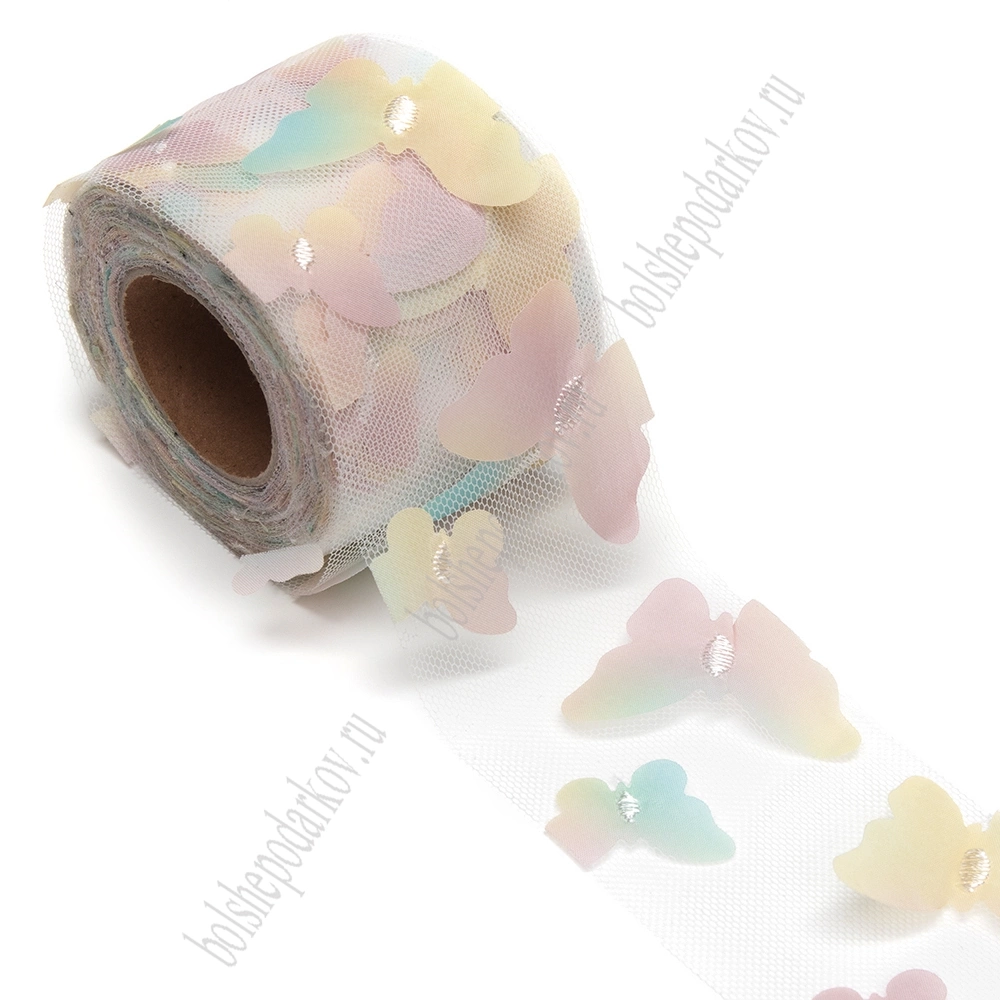 Фатин "Бабочки" 5,5 см*15 ярд (SF-6045) радужный №3