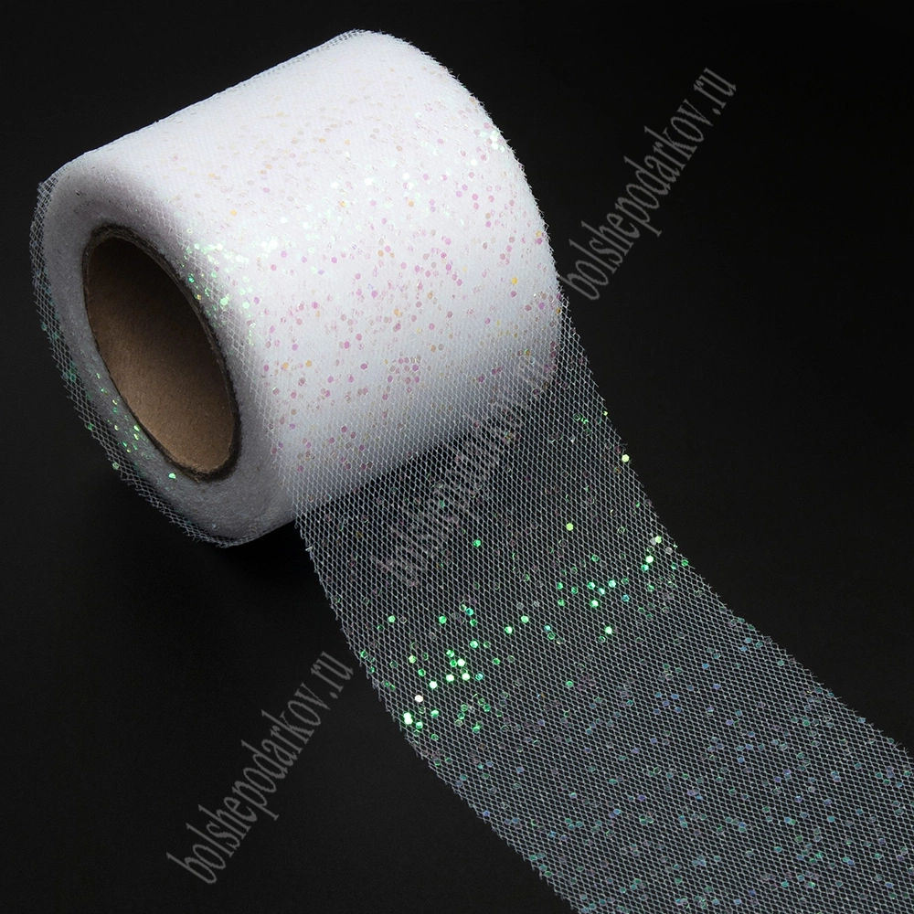 Фатин с блестками 5,5 см*15 ярд (SF-5805) белый №1А