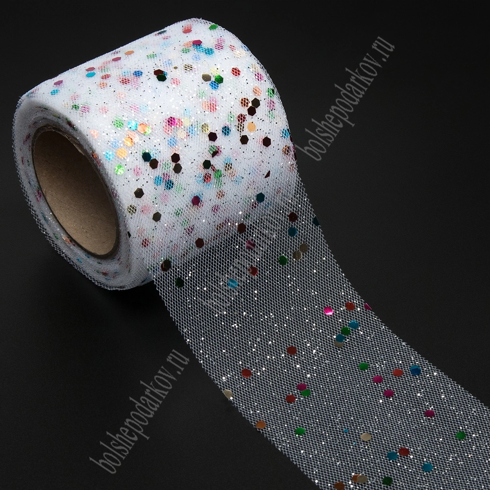 Фатин с блестками и пайетками 5,5 см*15 ярд (SF-5807) белый №1А