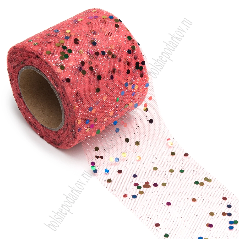 Фатин с блестками и пайетками 5,5 см*15 ярд (SF-5807) красный №5