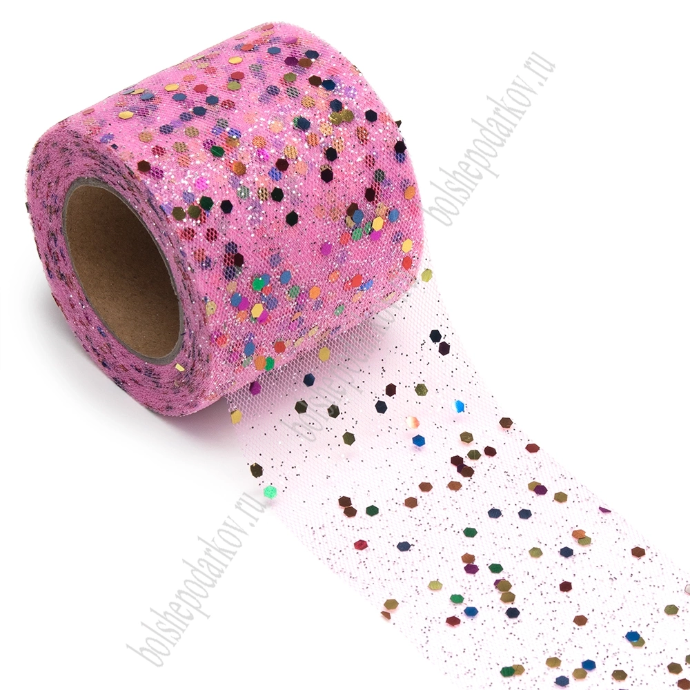 Фатин с блестками и пайетками 5,5 см*15 ярд (SF-5807) ярко-розовый №39