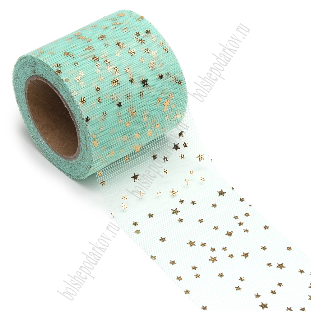 Фатин «Звездочки» 5,5 см*15 ярд (SF-5809) аквамариновый/золото №3
