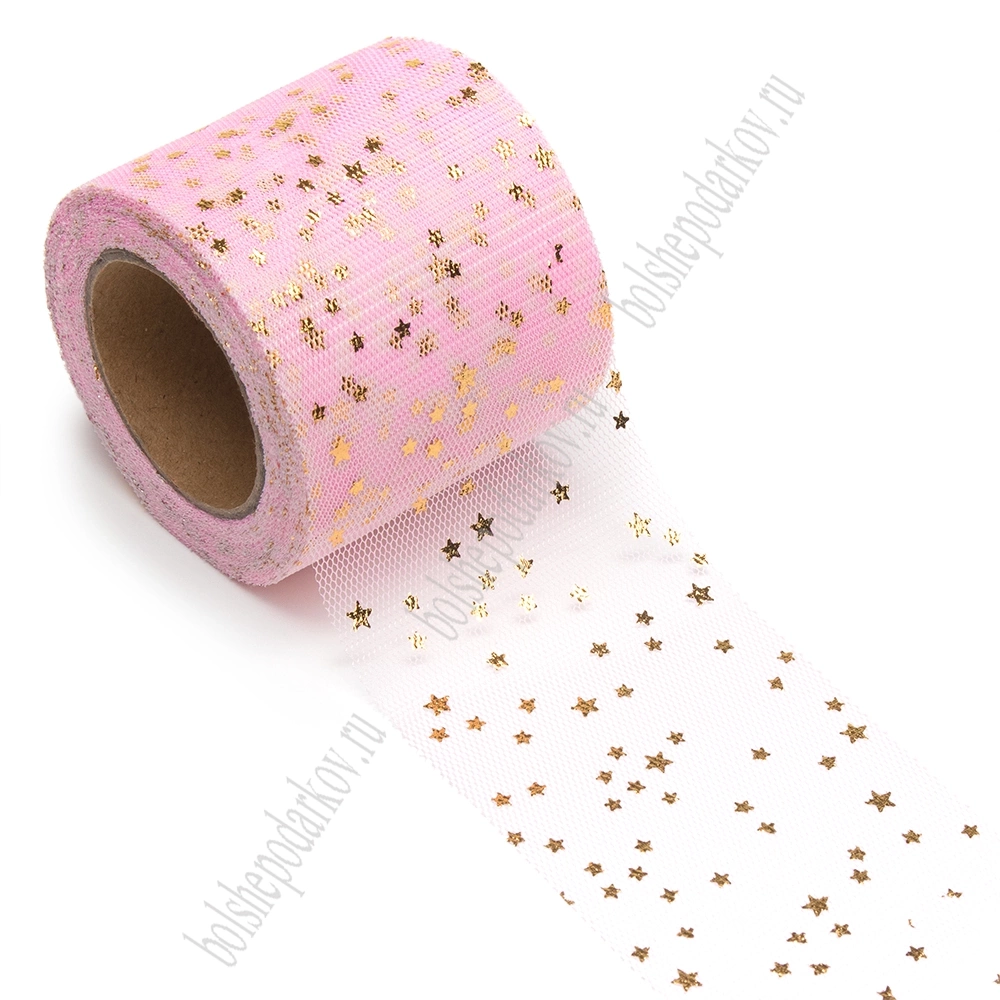 Фатин «Звездочки» 5,5 см*15 ярд (SF-5809) розовый/золото №26