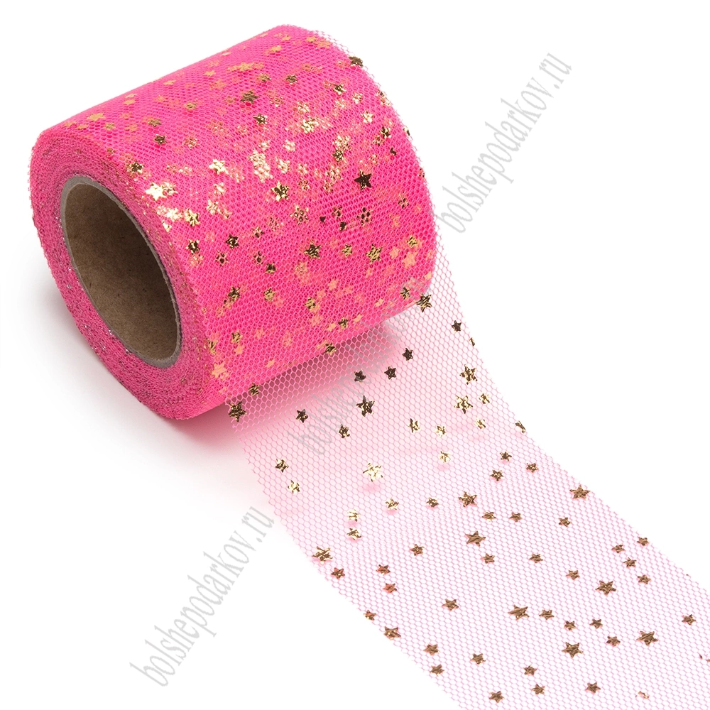 Фатин «Звездочки» 5,5 см*15 ярд (SF-5809) ярко-розовый/золото №13