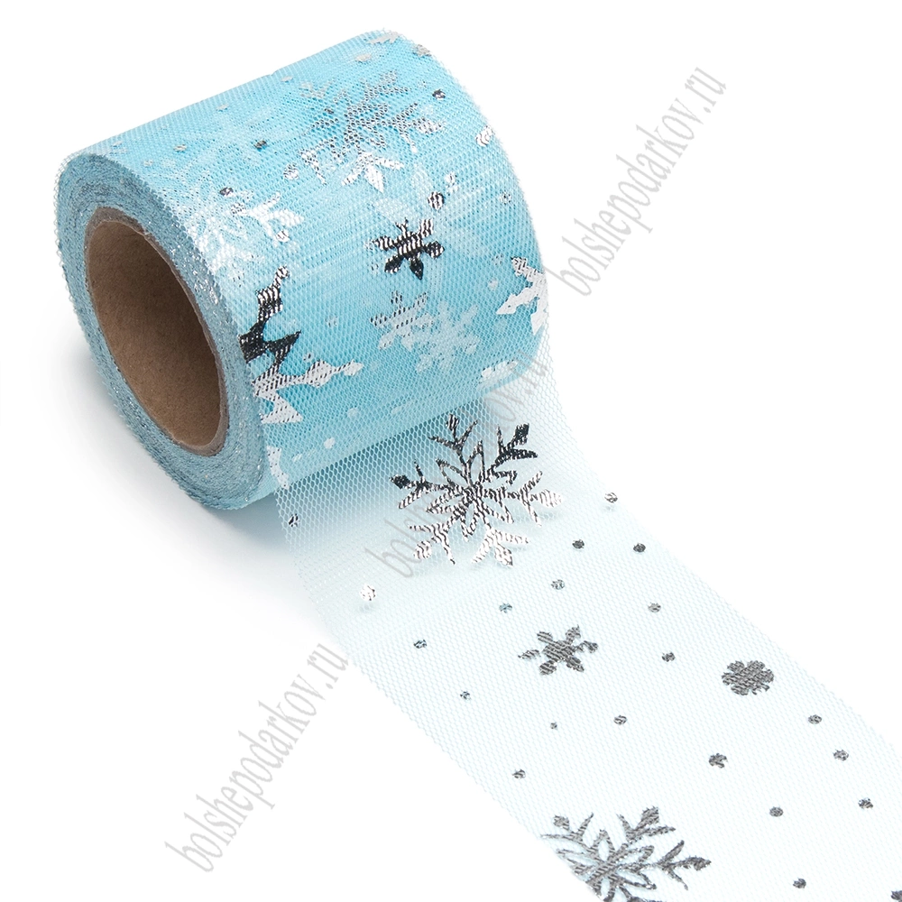Фатин «Снежинки» 5,5 см*15 ярд (SF-5812) голубой/серебро №14