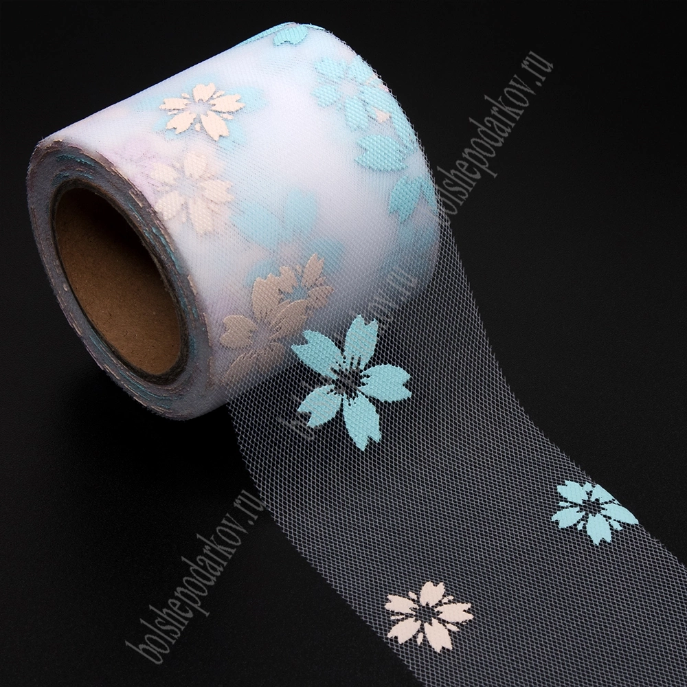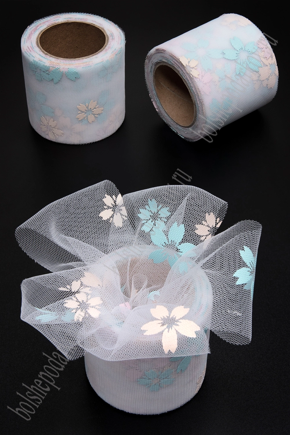 Фатин «Цветочки» 5,5 см*15 ярд (SF-6042) белый №1А