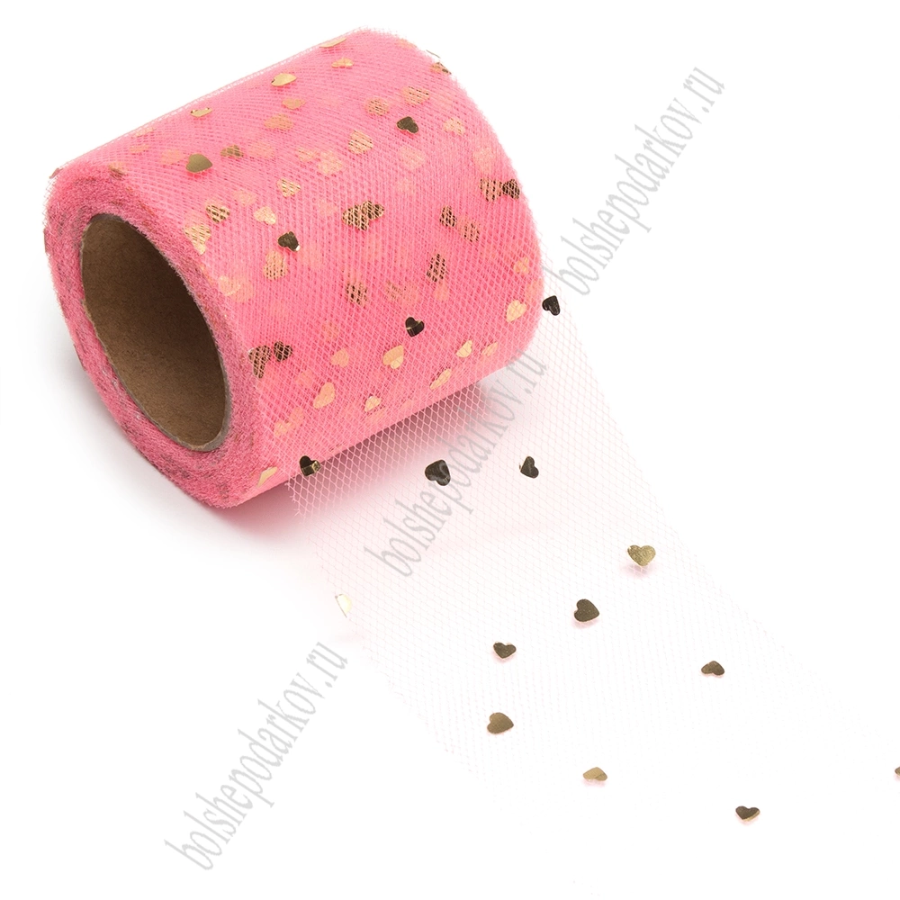 Фатин «Сердечки» 5,5 см*15 ярд (SF-5808) коралловый/золото №43