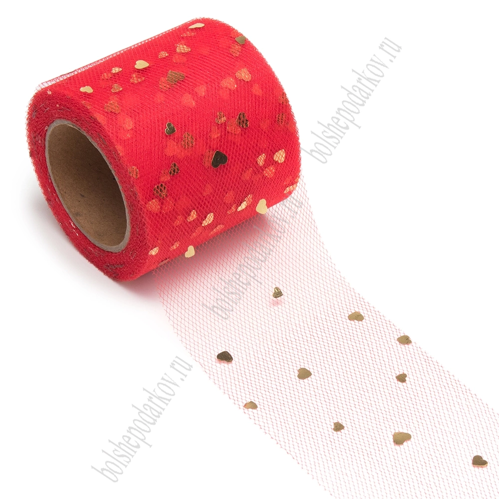 Фатин «Сердечки» 5,5 см*15 ярд (SF-5808) красный/золото №37