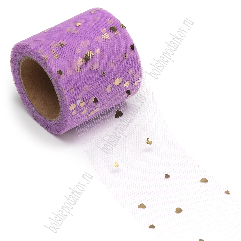 Фатин «Сердечки» 5,5 см*15 ярд (SF-5808) фиолетовый/золото №32