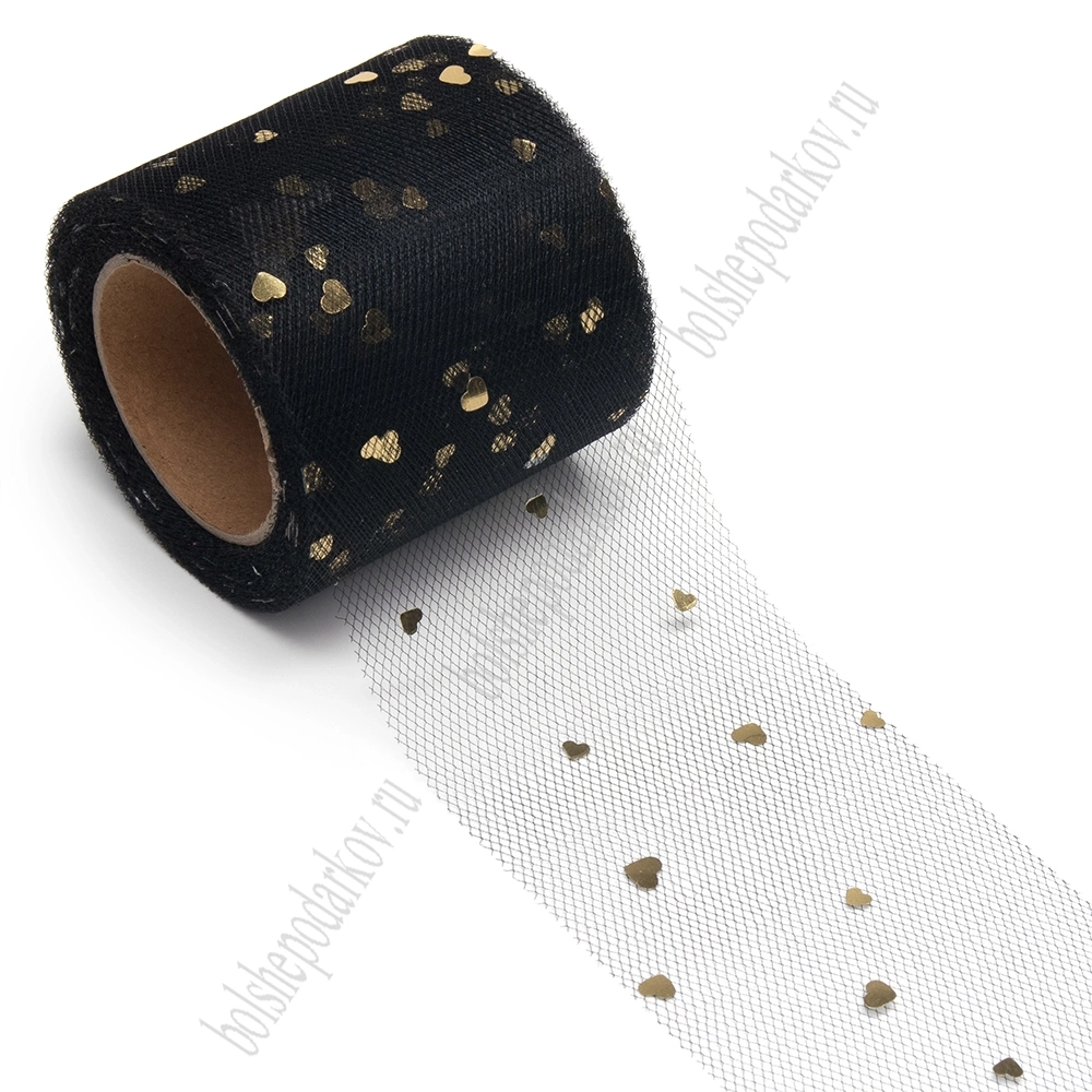 Фатин «Сердечки» 5,5 см*15 ярд (SF-5808) черный/золото №12