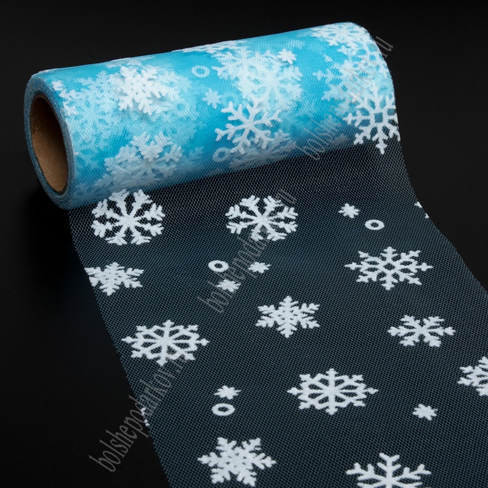 Фатин "Снежинки" 15 см*10 ярд (SF-7523) голубой