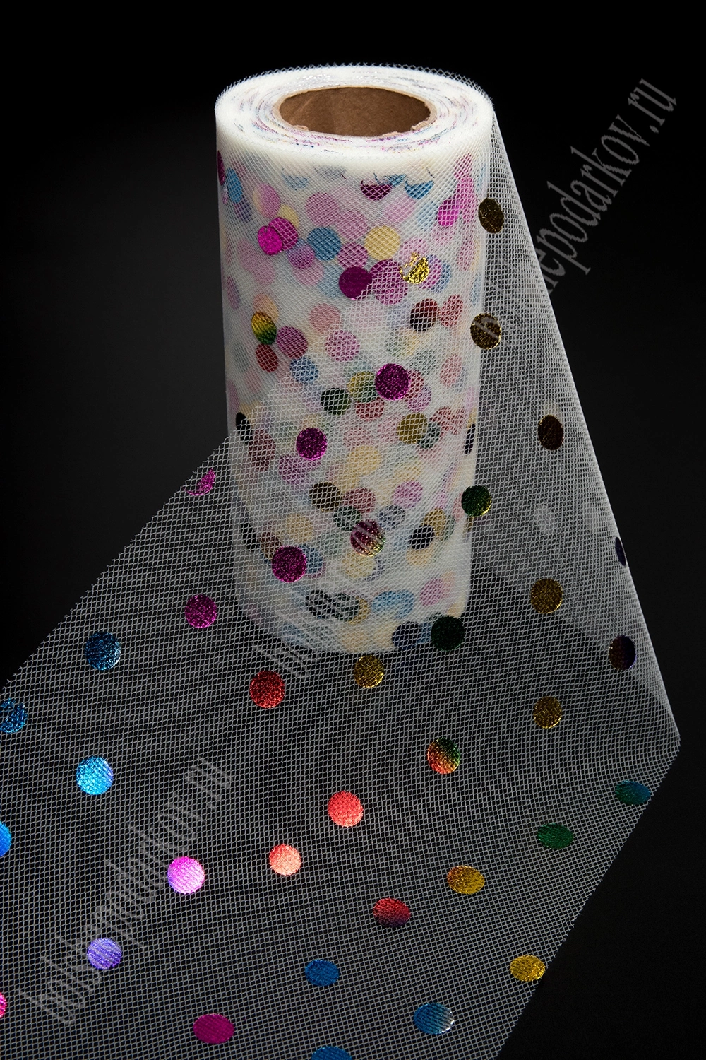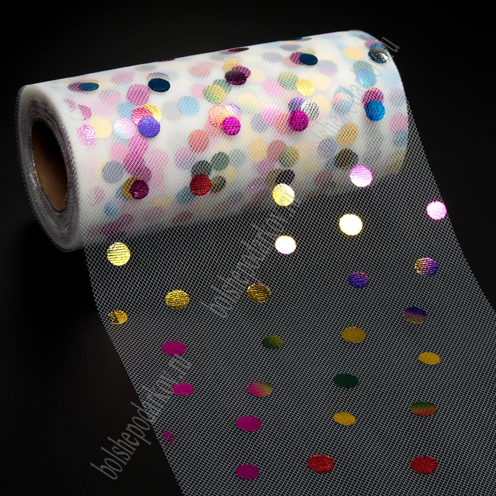 Фатин "Разноцветный горох" 15 см*25 ярд (SF-2951) молочный
