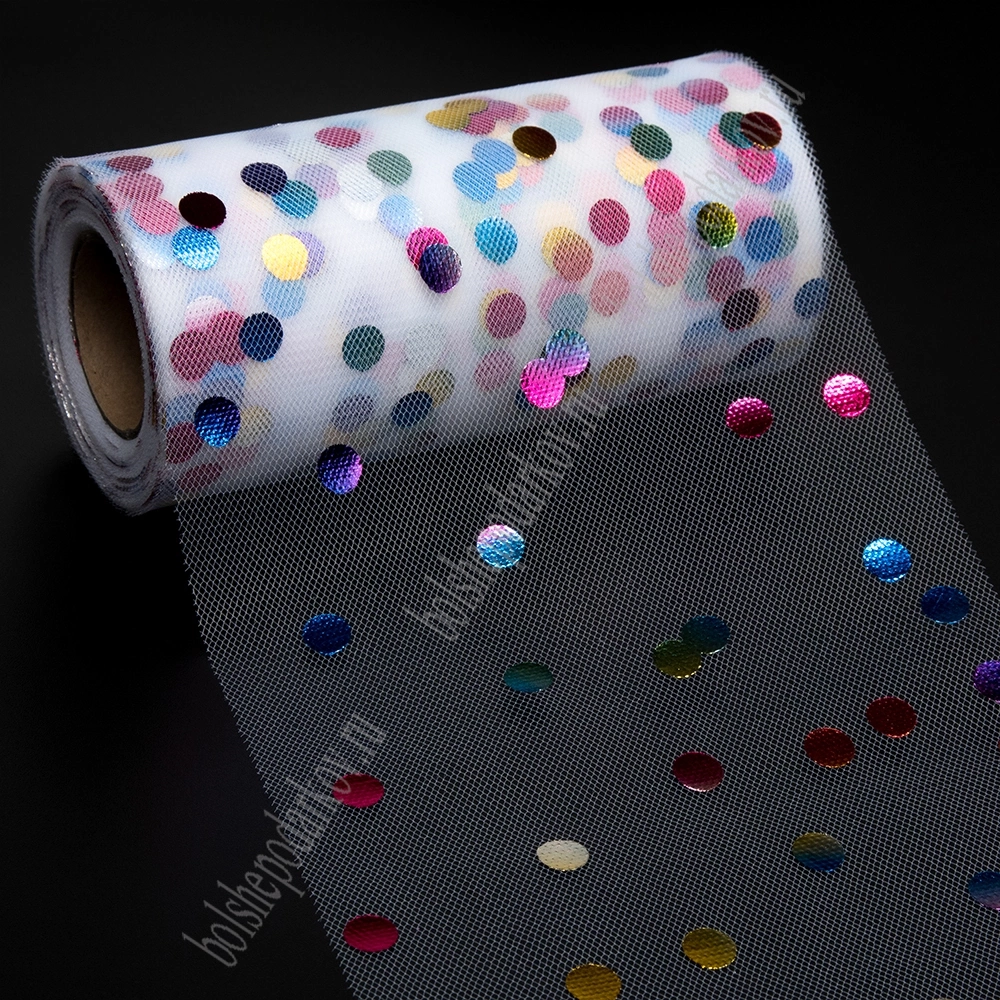 Фатин "Разноцветный горох" 15 см*25 ярд (SF-2951) белый