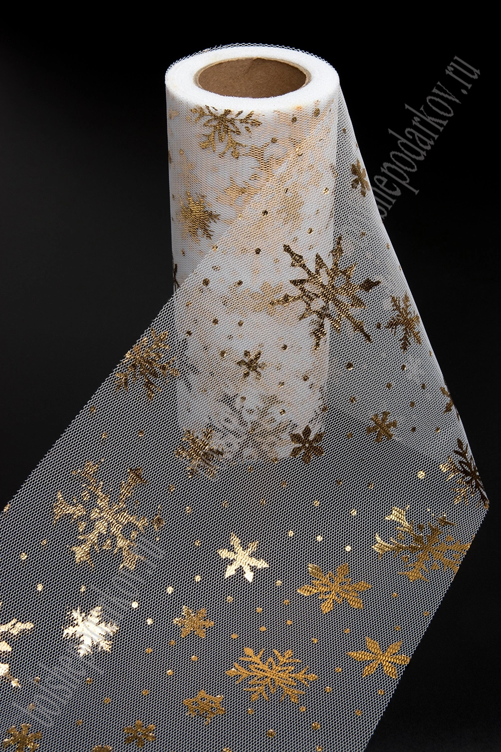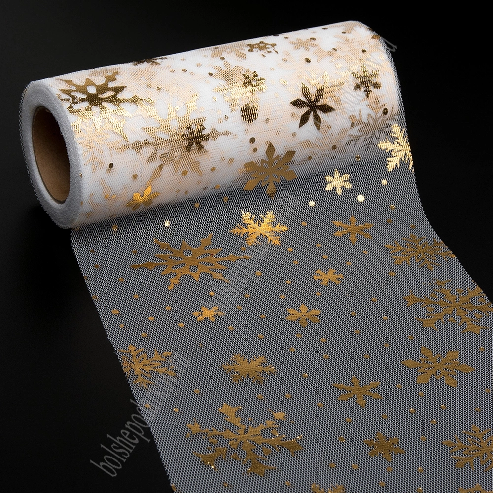 Фатин "Снежинки" 15 см*15 ярд (SF-3776) белый/золото