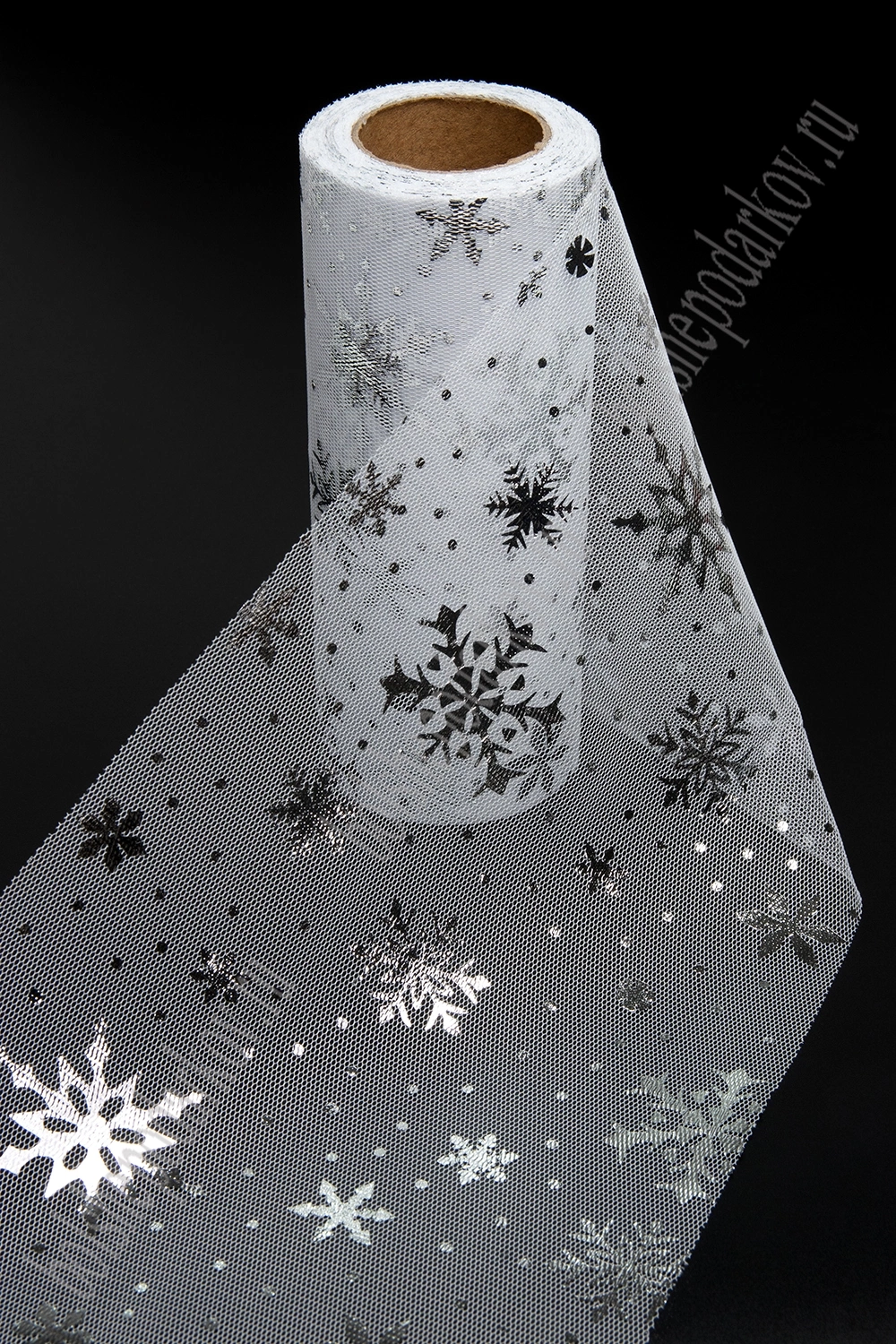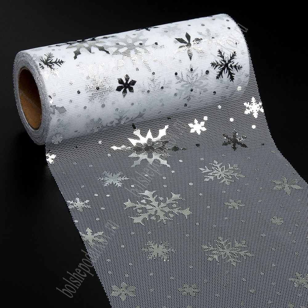 Фатин "Снежинки" 15 см*15 ярд (SF-3776) белый/серебро