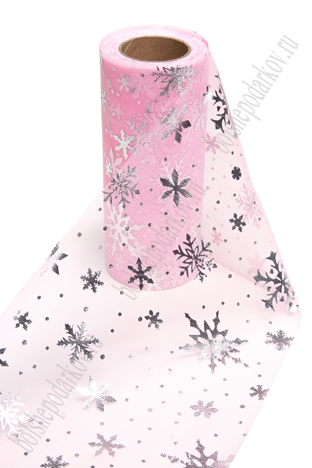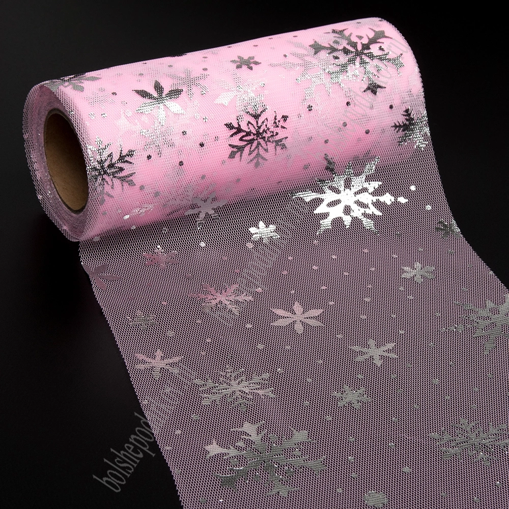 Фатин "Снежинки" 15 см*15 ярд (SF-3776) розовый/серебро