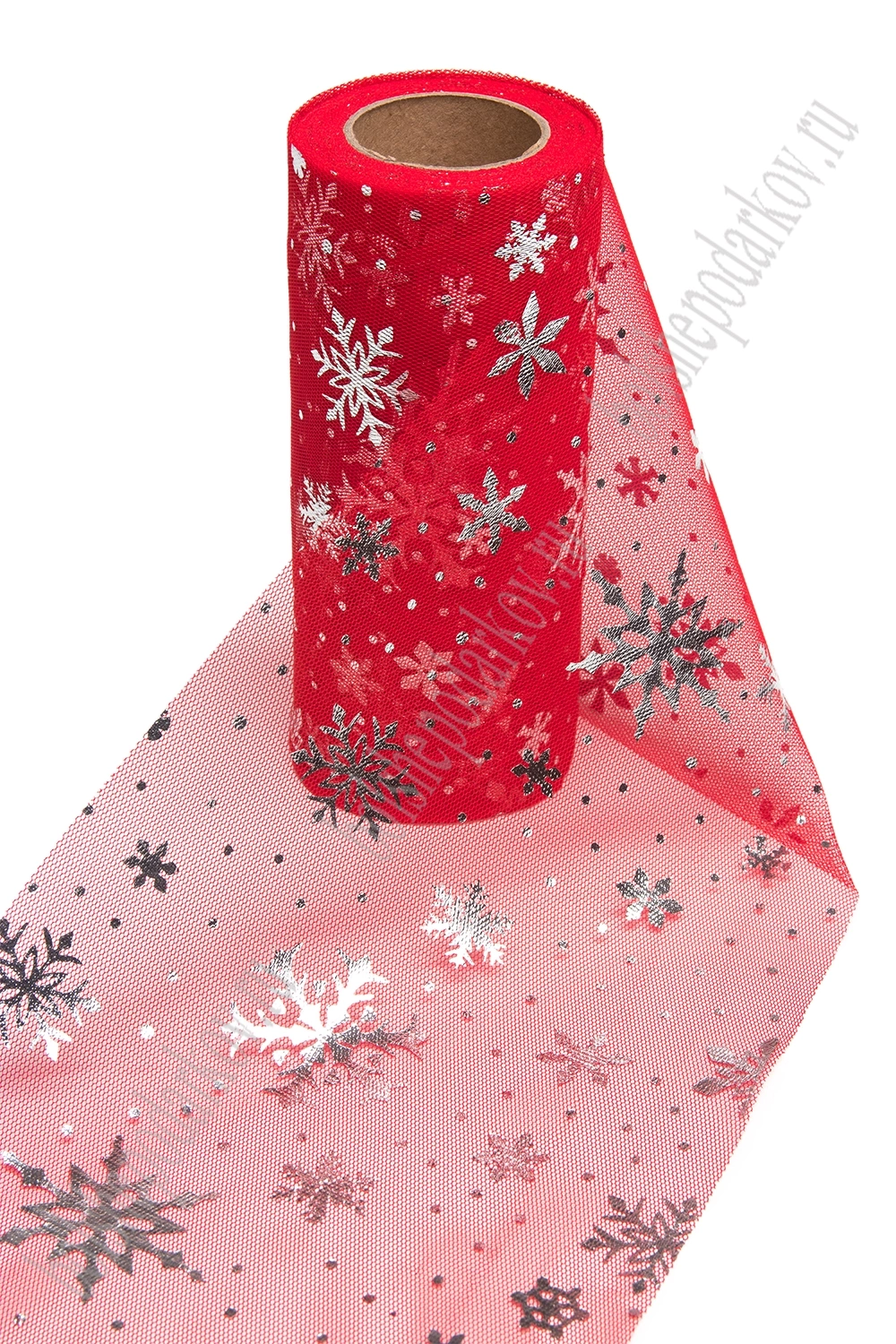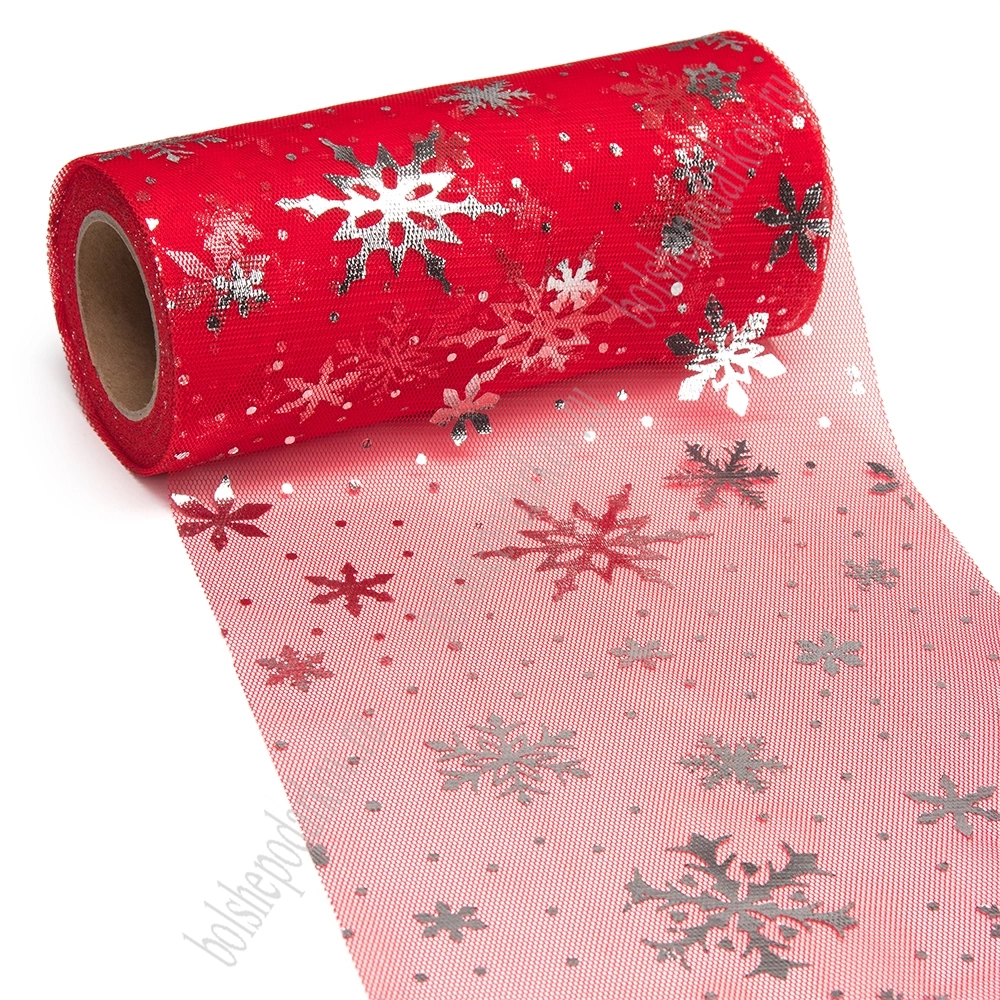 Фатин "Снежинки" 15 см*15 ярд (SF-3776) красный/серебро