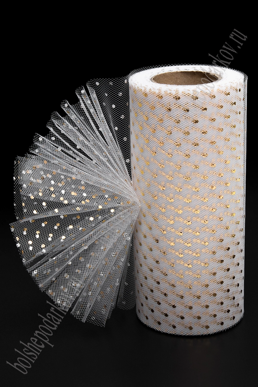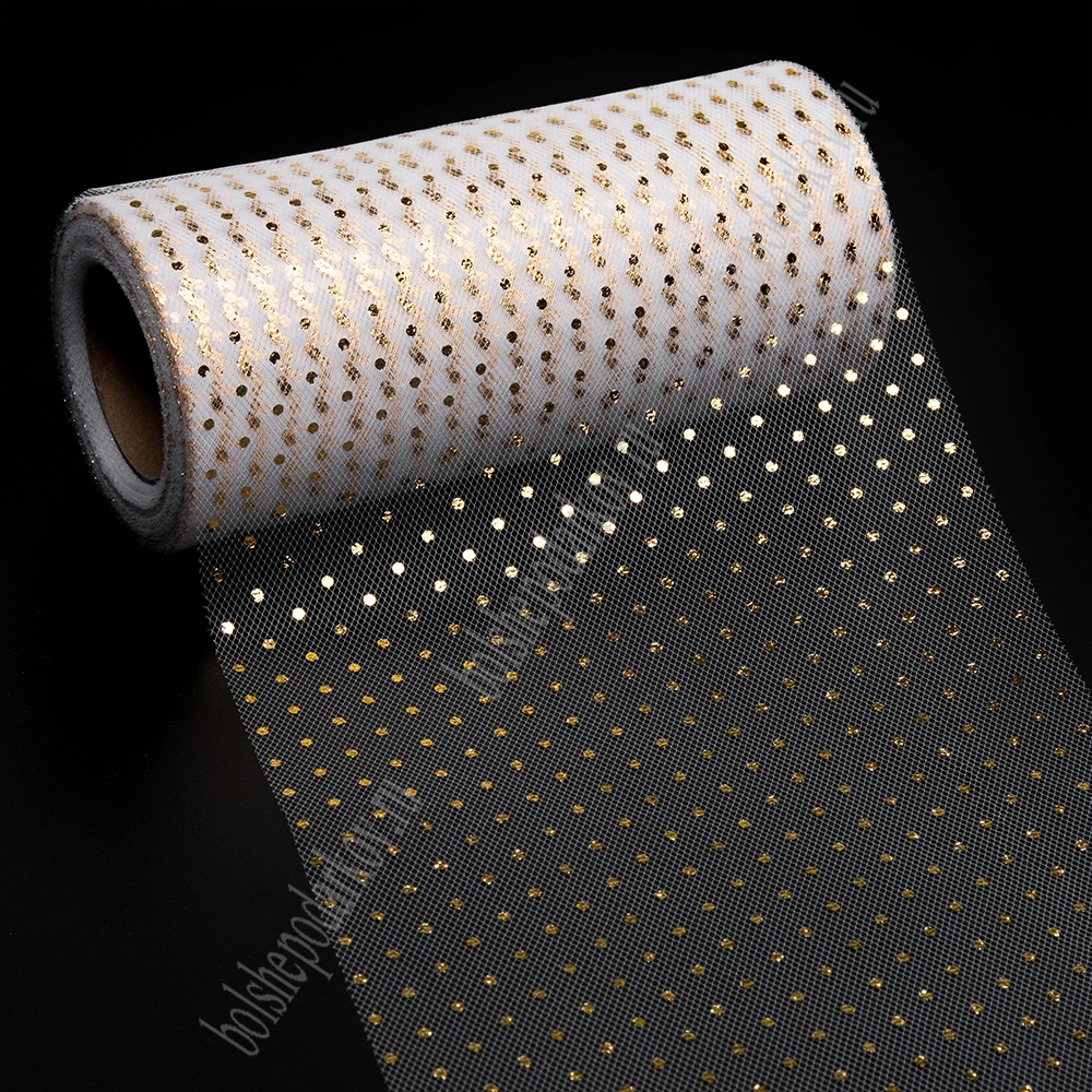 Фатин "Горошек" 15 см*25 ярд (SF-3778) белый/золото
