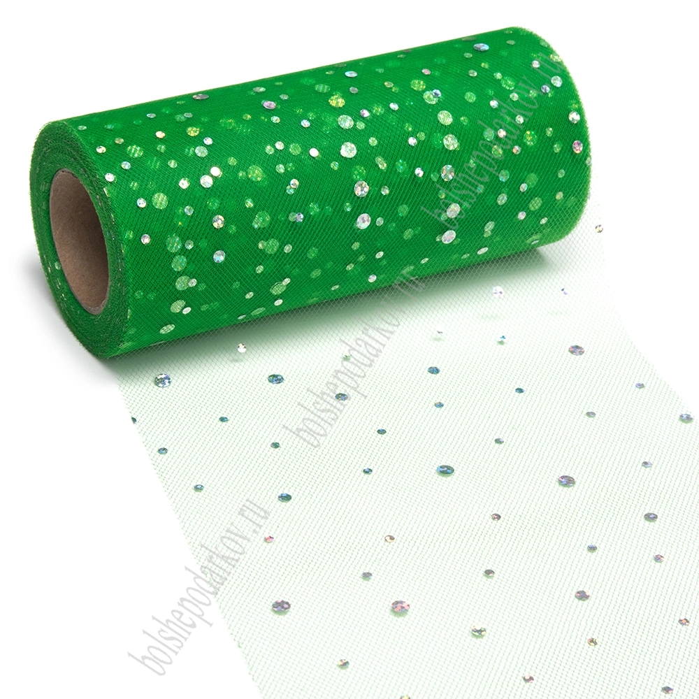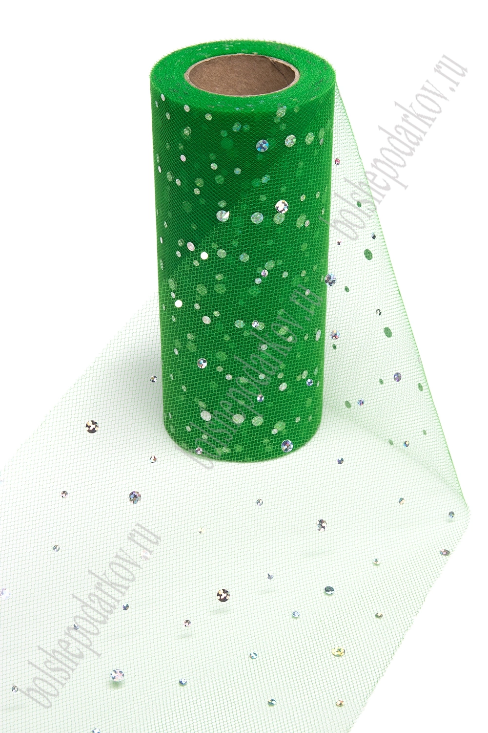 Фатин с пайетками "Горох" 15 см*25 ярд (SF-2939) зеленый №48