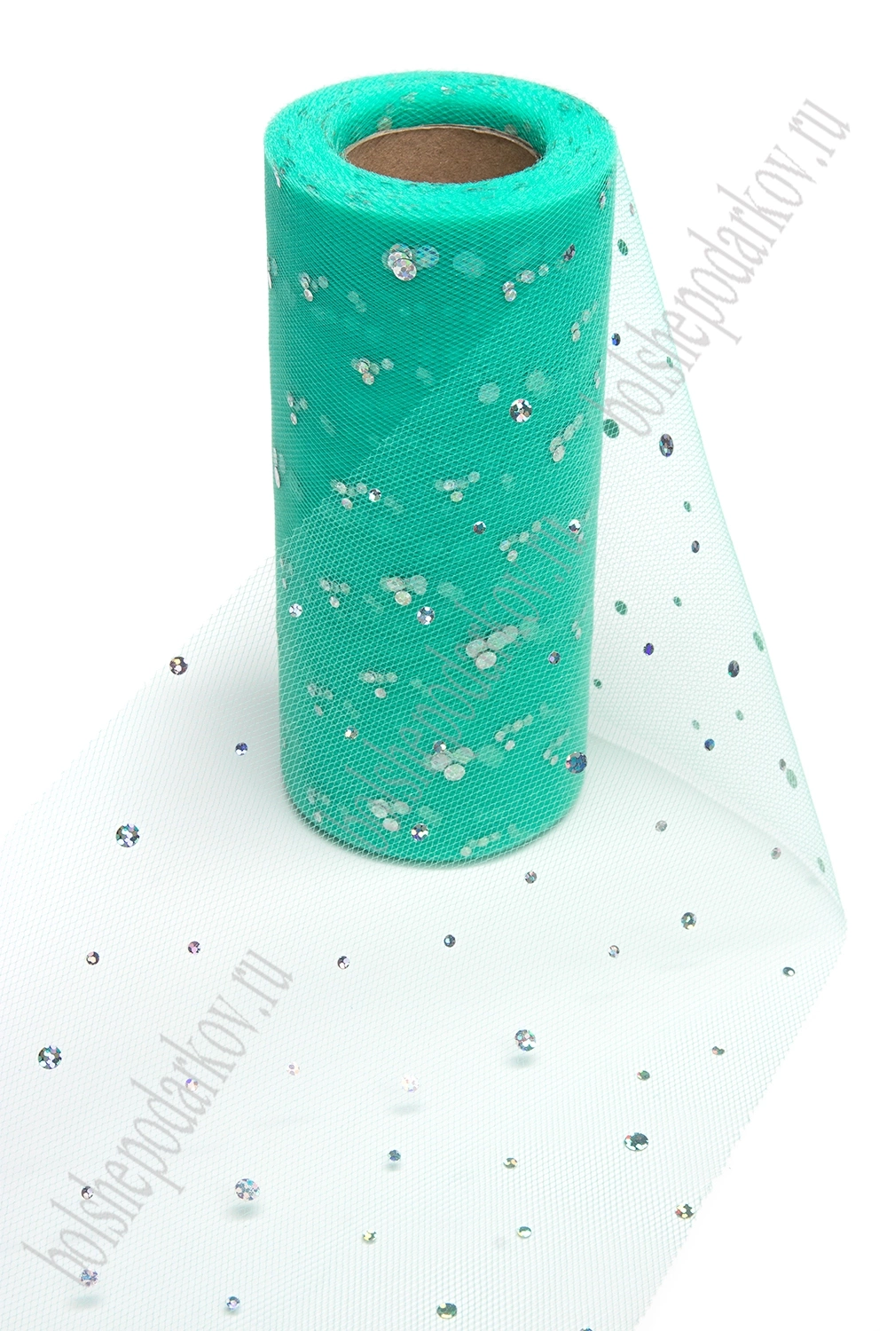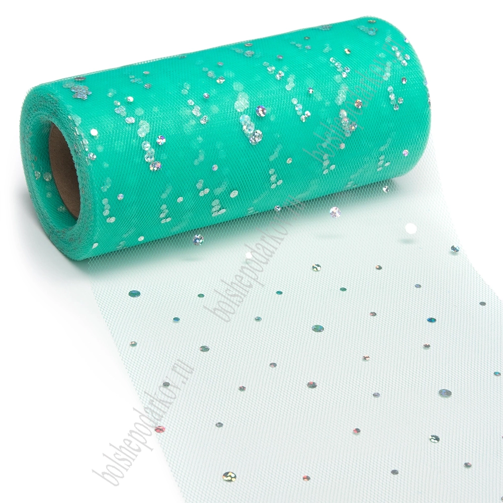 Фатин с пайетками "Горох" 15 см*25 ярд (SF-2939) аквамарин №18