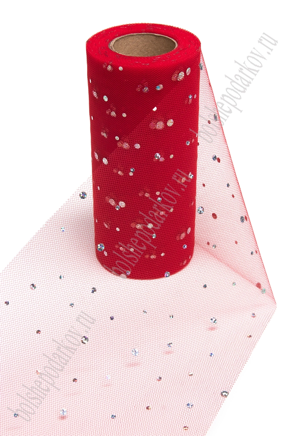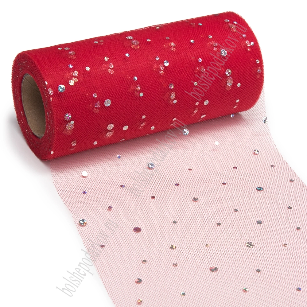 Фатин с пайетками "Горох" 15 см*25 ярд (SF-2939) красный №37