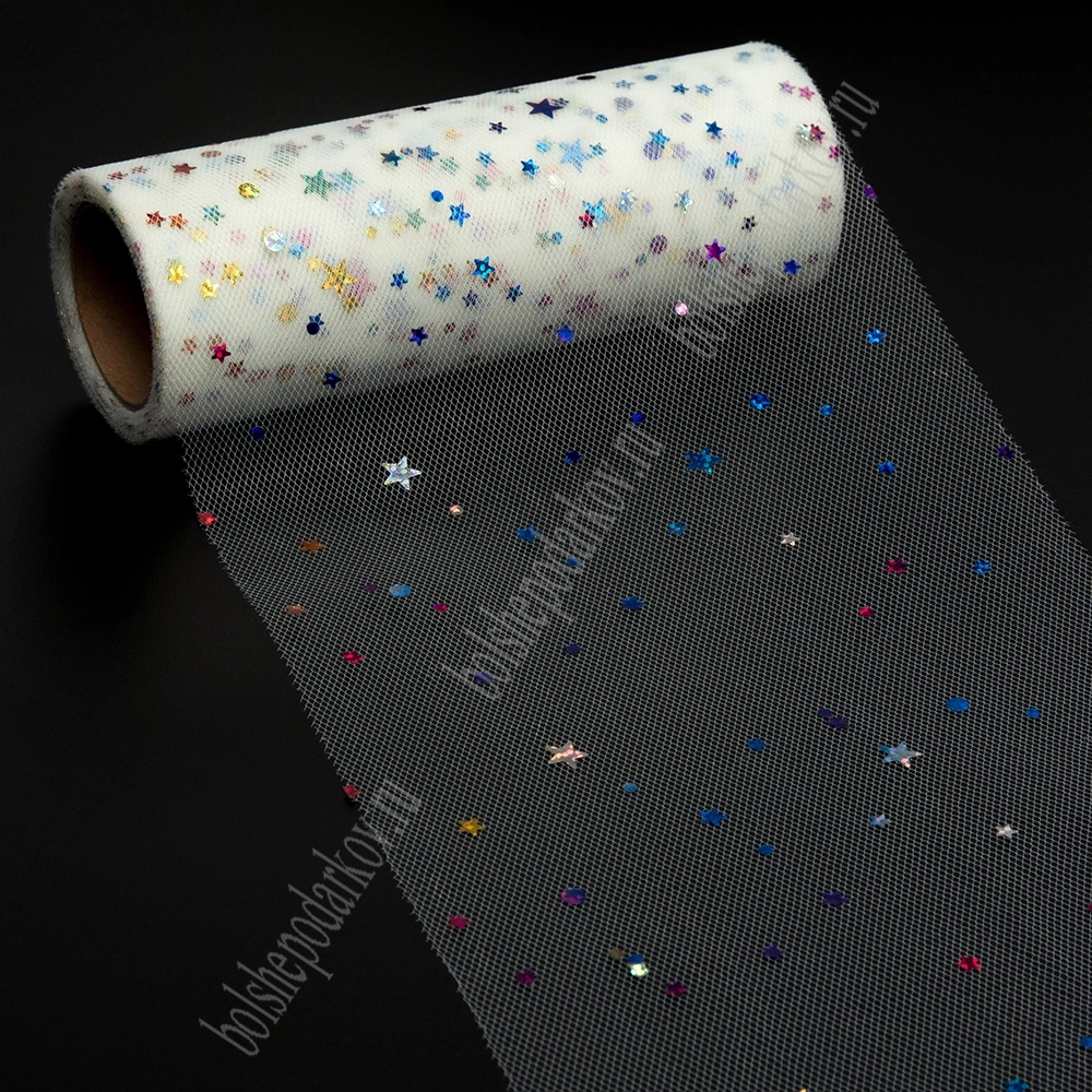Фатин с пайетками "Звездочки" 15 см*10 ярд (SF-2945) айвори №33